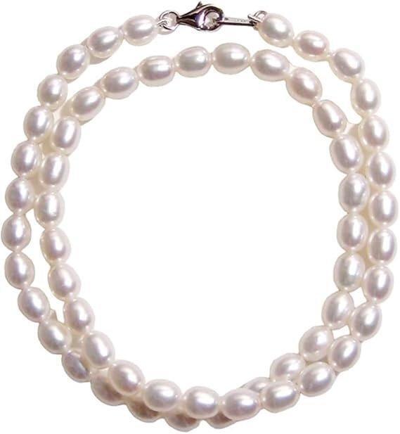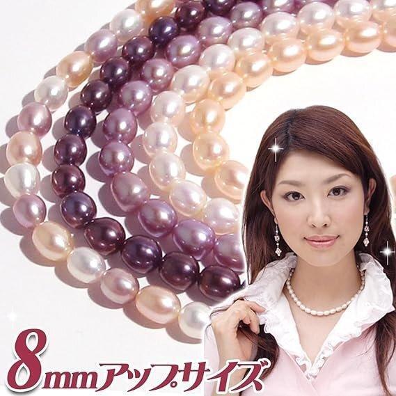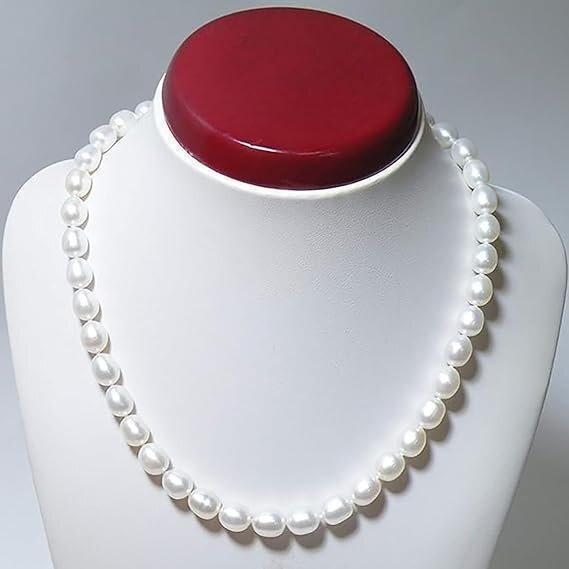 淡水パール ライス オーパル形 大粒8-9mm ネックレス 40cm ホワイト