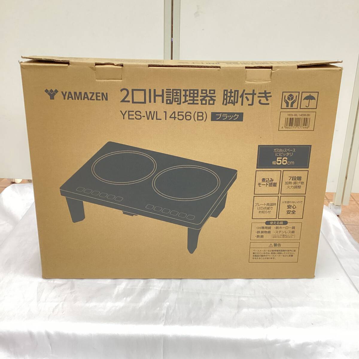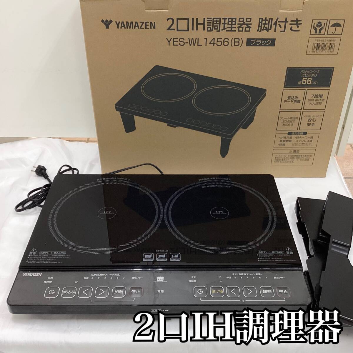 【美品】YAMAZEN 山善 2口IH調理器 2024年製 YES-WL1456 黒 ブラック 50/60Hz 脚付き 7段階調整 E355