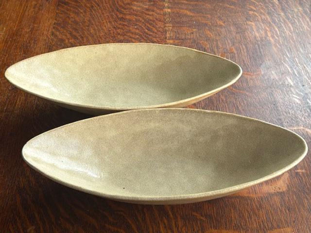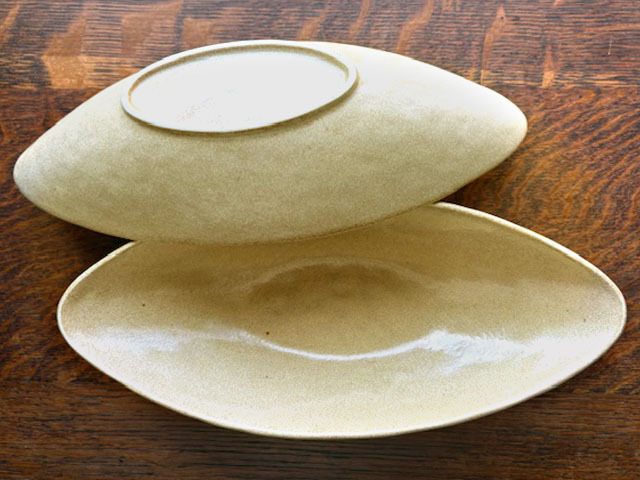 洋食器●楕円皿2枚セット●深さのある横長型●横幅31cm●ベージュ