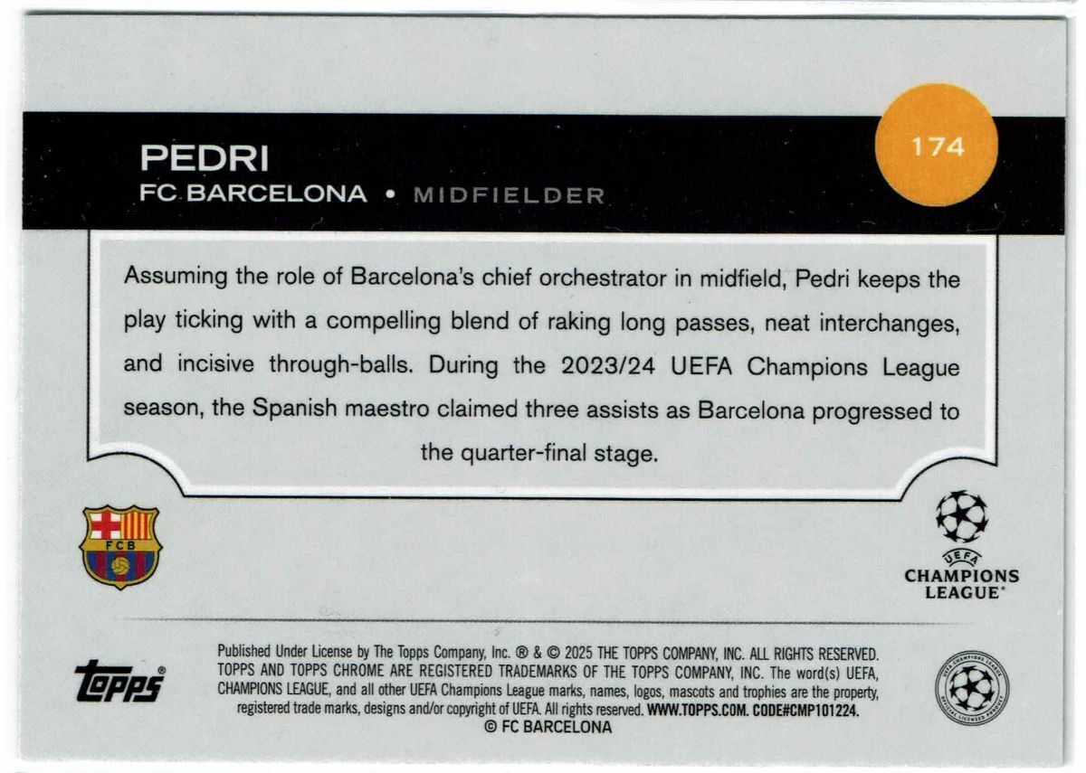 2024-25 Topps Chrome UEFA Club Competitions #174 ペドリ Pedri ペドロ・ゴンサレス・ロペス - FC Barcelona バルセロナ