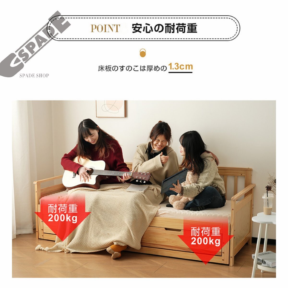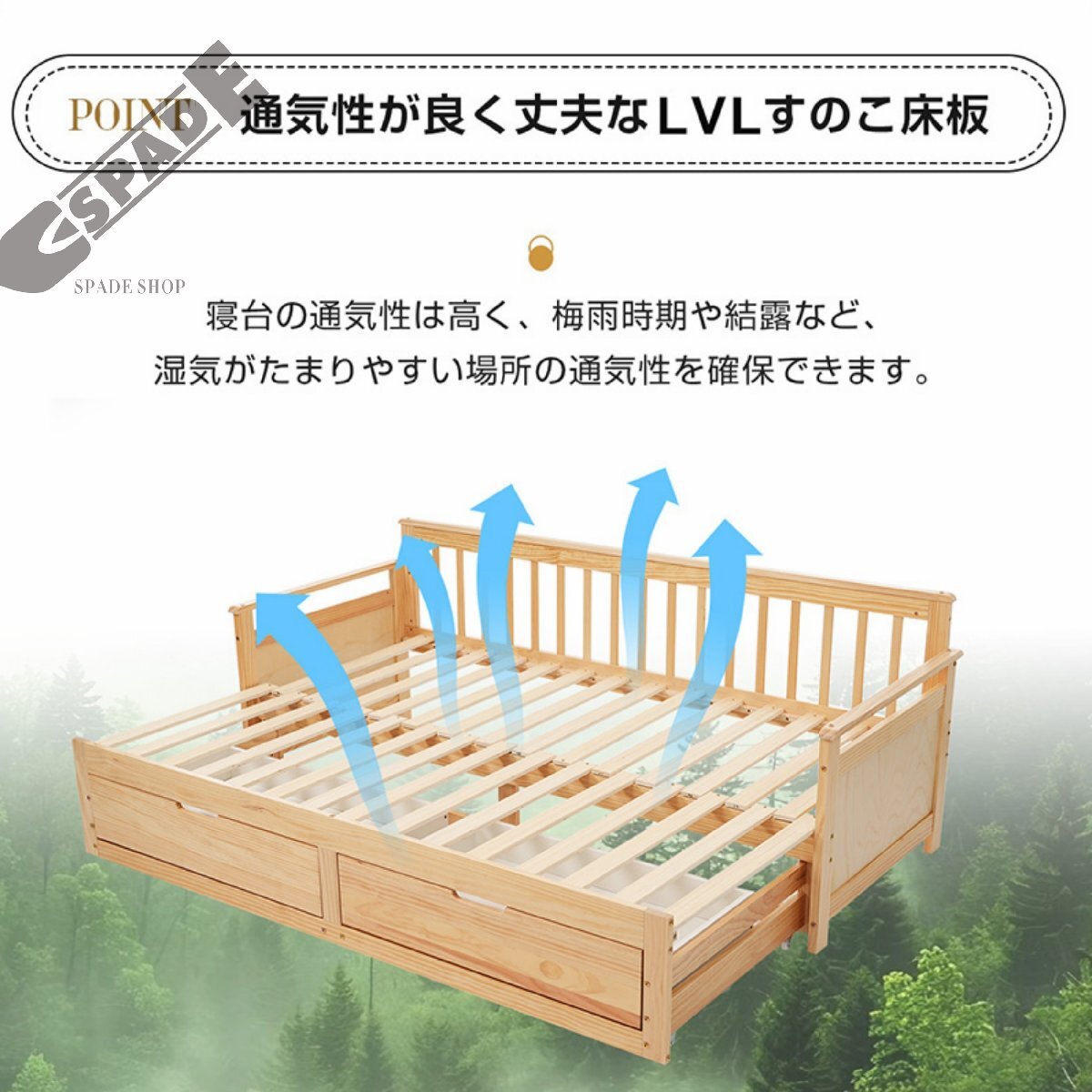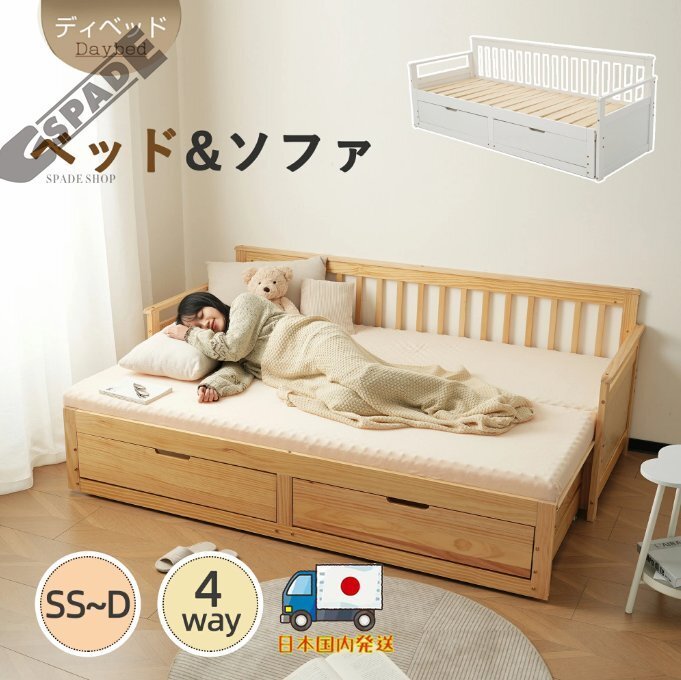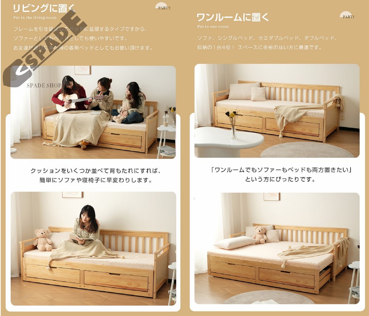 【国内発送】ソファベッド ディベッド 伸長式ベッド 木製 引き出し付き 収納付き おしゃれ 2way 天然木 パイン材 すのこ仕様【ナチュラル】