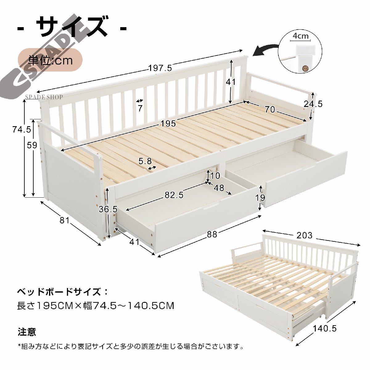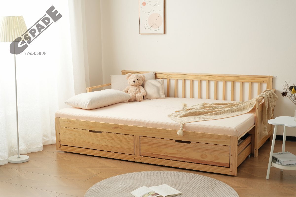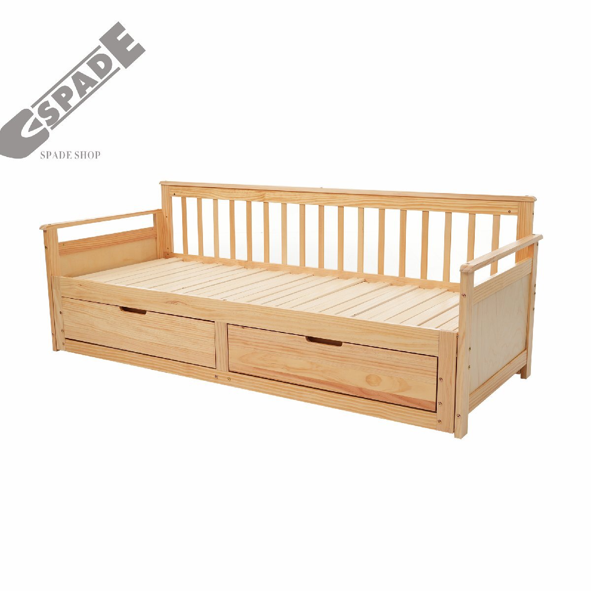 【国内発送】ソファベッド ディベッド 伸長式ベッド 木製 引き出し付き 収納付き おしゃれ 2way 天然木 パイン材 すのこ仕様【ナチュラル】