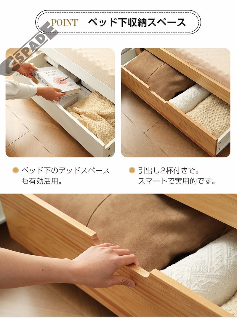 • 【ベッド下収納スペース】ベッド下のデッドスペースも有効活用。引出し2杯付きでスマートで実用的です。