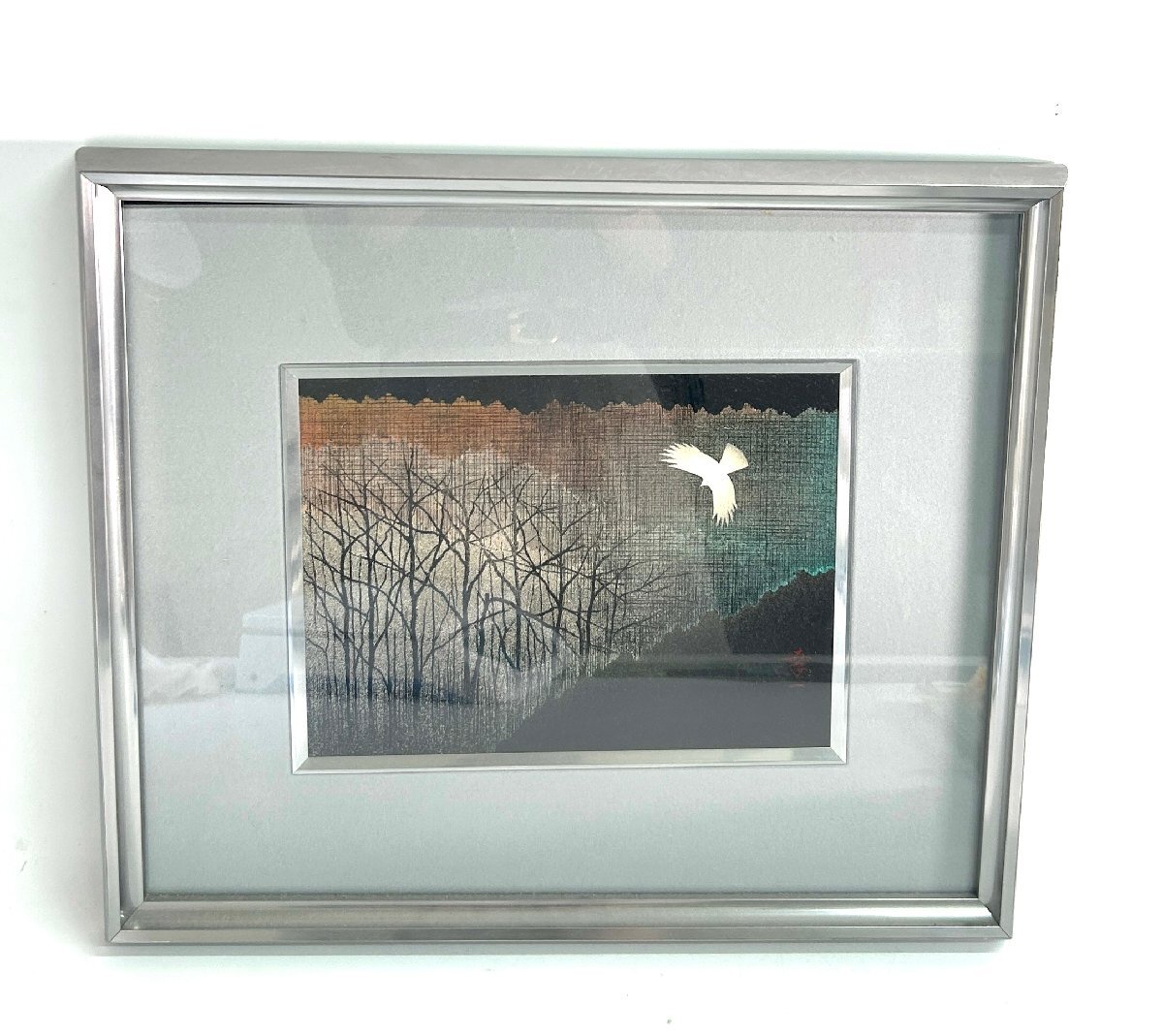 輪島 漆芸 美術品 壁掛 絵画 白い鳥 銘入り 額サイズ35㎝×41㎝