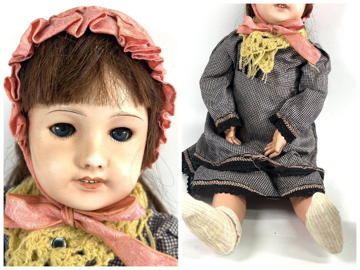 【和の美】 ★1円スタート★ ビスクドール UNIS FRANCE ユニスフランス 現状品 女の子 帽子 ワンピース アンティーク オープンマウス