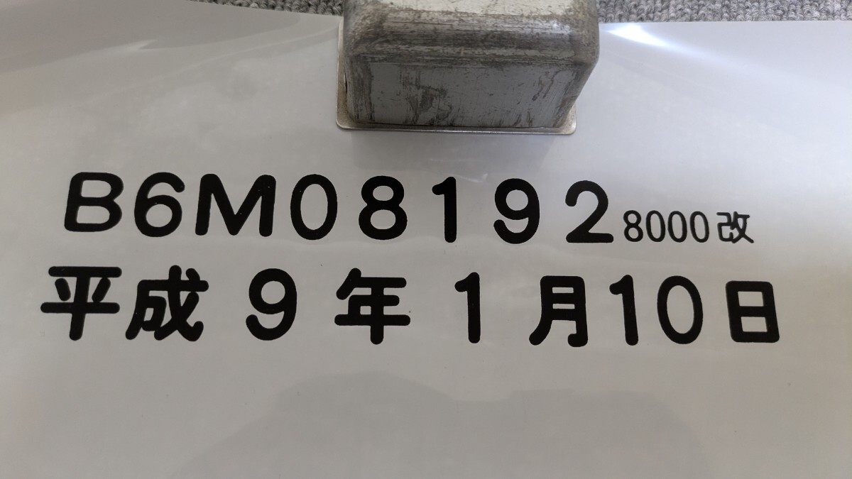 幕の上端に「B6M08192 8000改 平成9年1月10日」の印字があります。