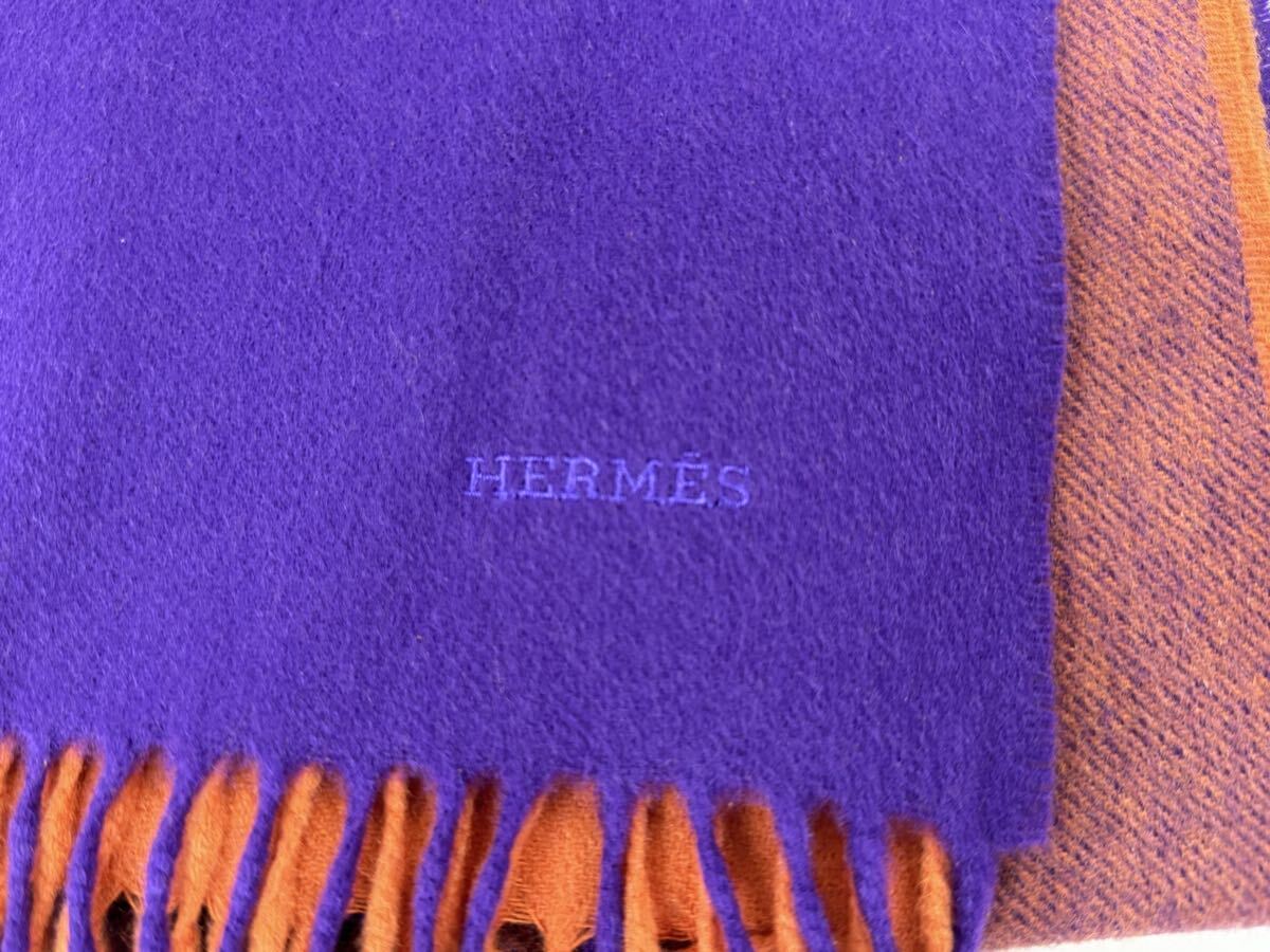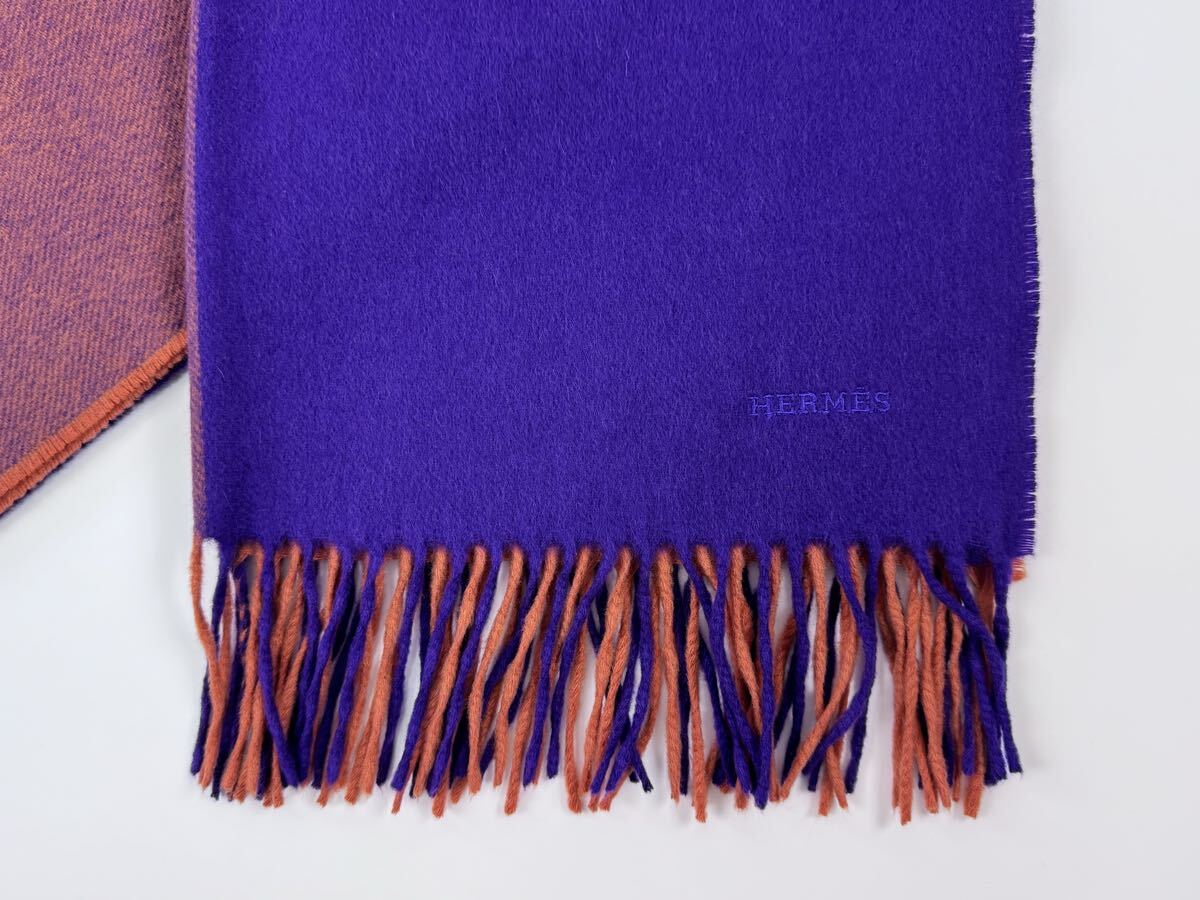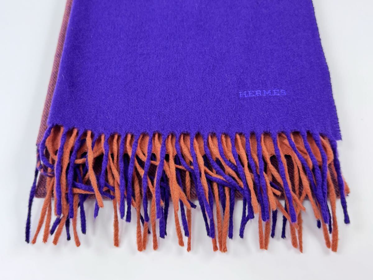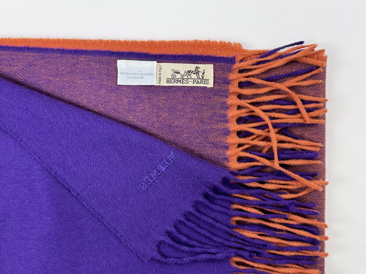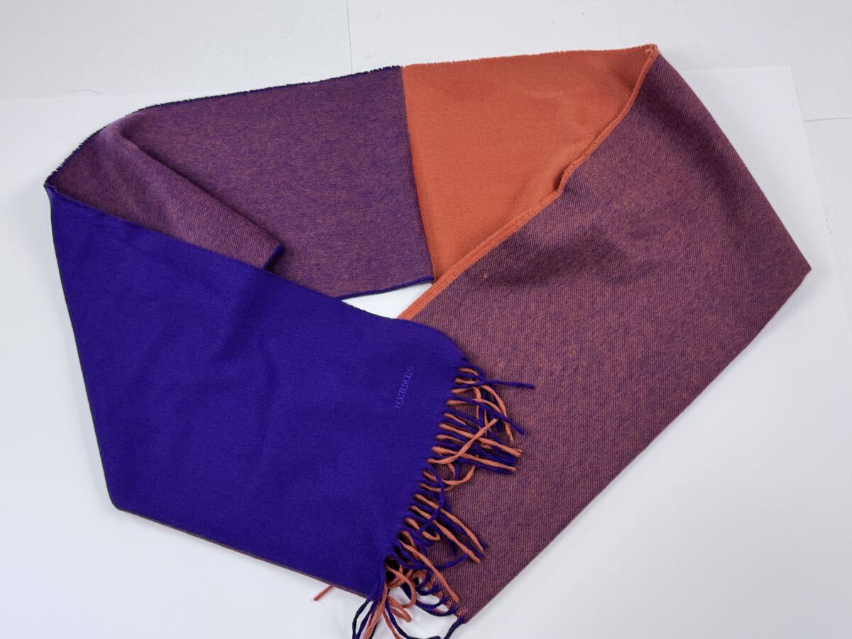 エルメス 大判 ストール マフラー カシミヤ100 バイカラー オレンジ パープル | |||