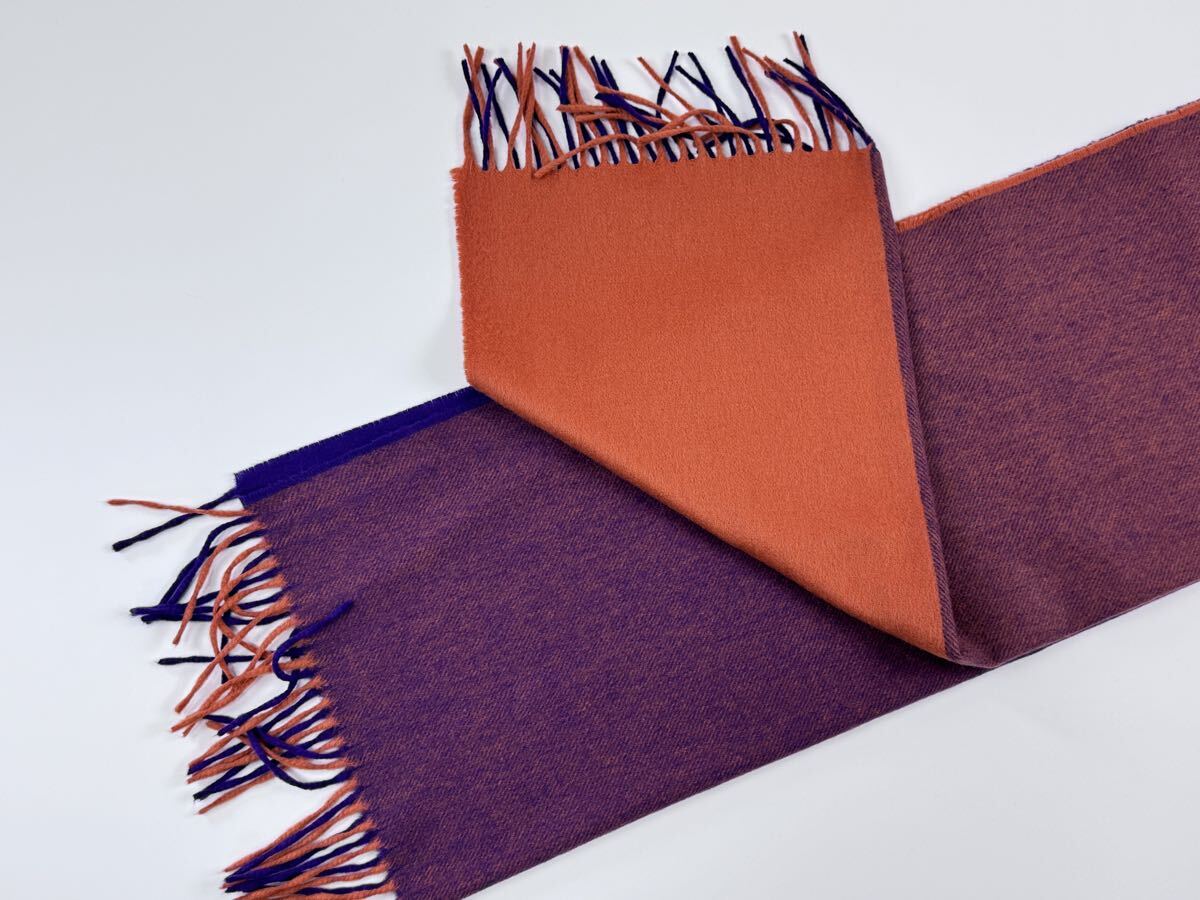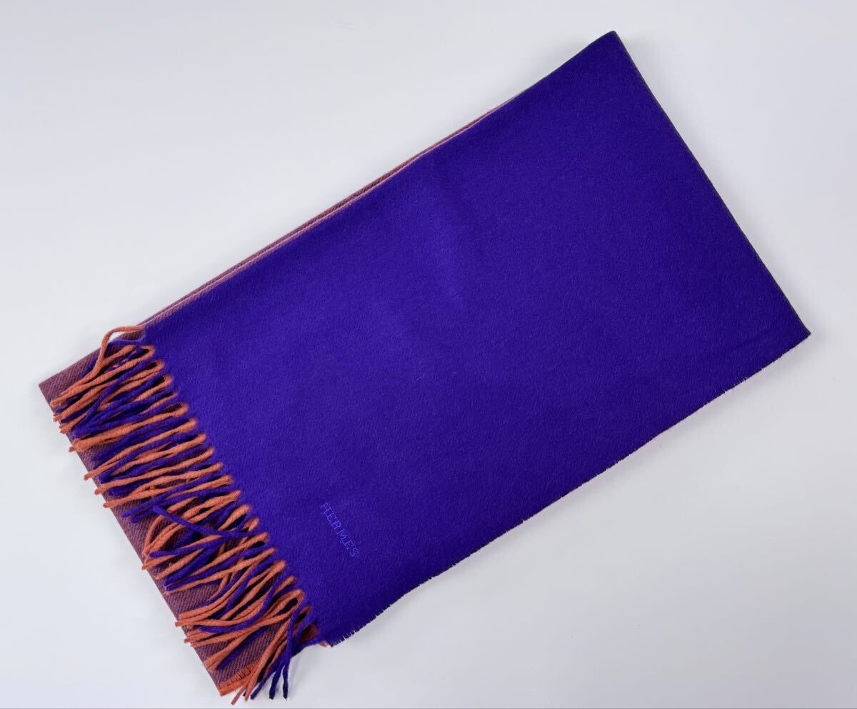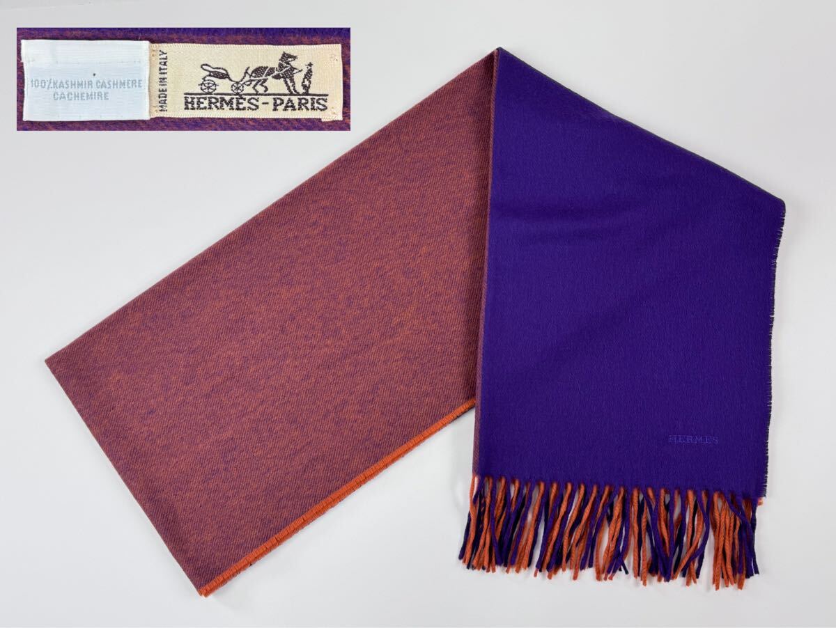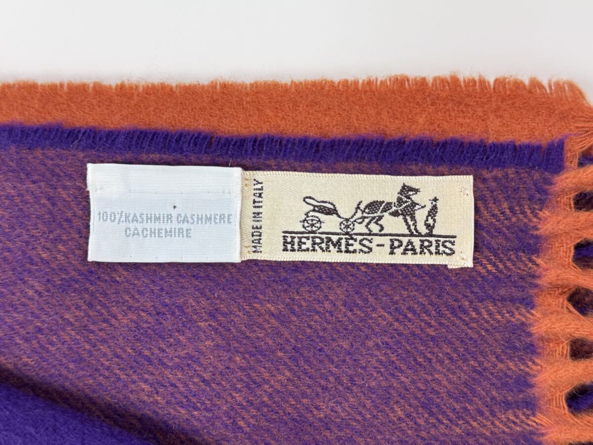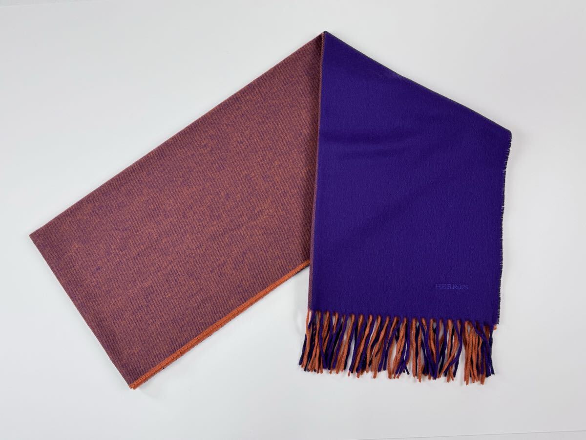 エルメス 大判 ストール マフラー カシミヤ100 バイカラー オレンジ パープル | |||