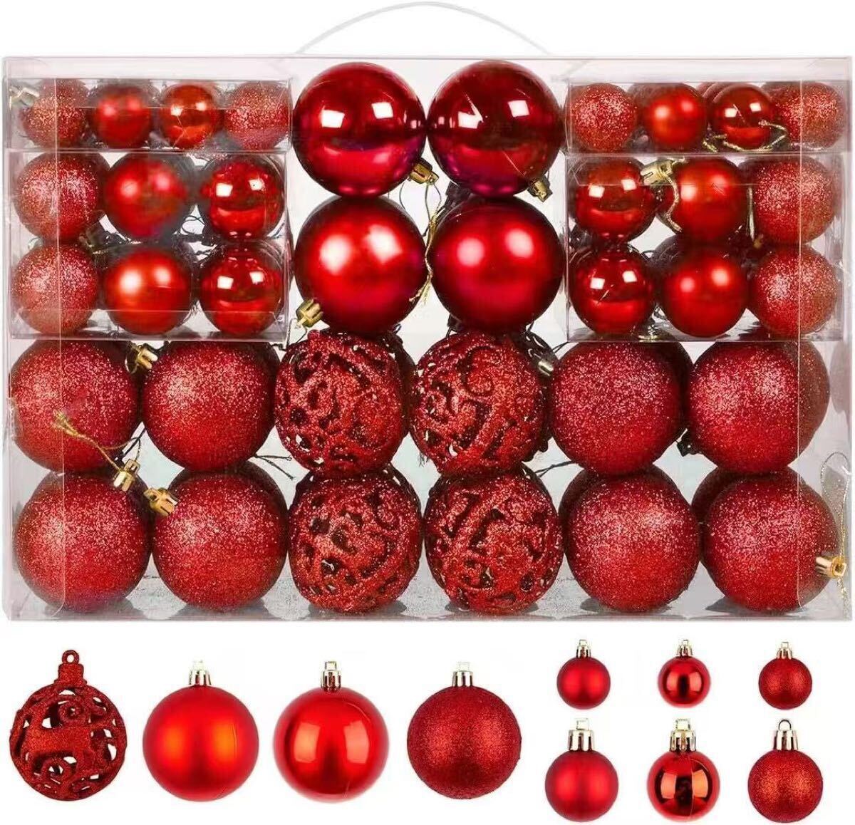 【豪華な100個ボールセット】この新年の飾りボールセットには、豪華100個入り、 10種類デザイン、グリッター・シャイニー・マット・透かし彫りの、4種類の異なる質感をセットにしています。数量が多くで、飾り付けると、ゴージャスな印象になります。表面には異なる精緻なテクスチャがあります。それぞれのボールは丹念に吹き込まれ、手作業で塗装されています。情熱的な赤はあなたの家を元気にします。