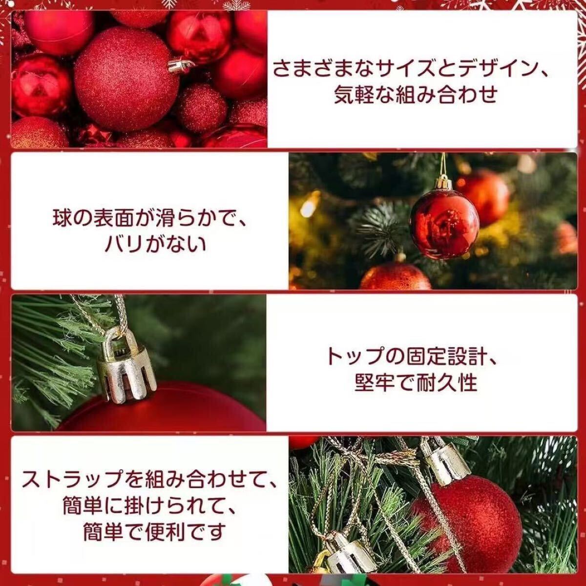 【飾り付けやすい 持ち運びが簡単】各ボールにはキャップと紐が付いており、簡単に吊るすことができて、落ちないようにしています、子供・女性でも使えます。プラスチック製のボールは、多層収納包装、持ち運びに便利です。各ボールはシームレス接続を採用し、洗練された外観を作り出しています。(ご注意:少量自体の特性によって、少量のラメの破片が付着しています。)