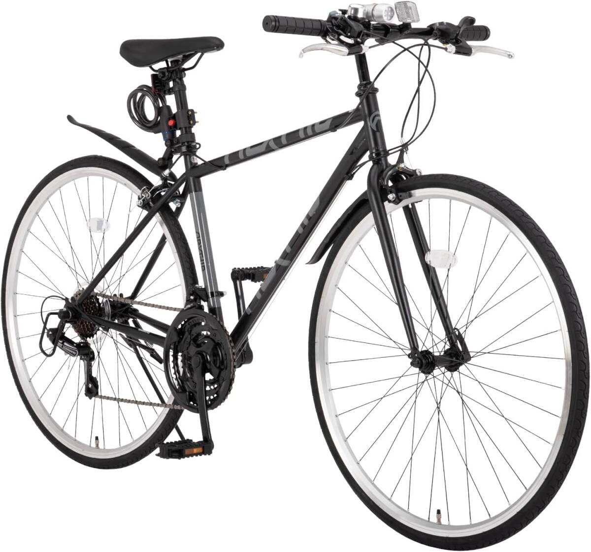 ブラック色 クリスマス 贈り物 プレゼント ネクスタイル NX-7021 クロスバイク 自転車 700C 27インチ相当 シマノ 21段変速