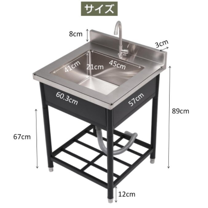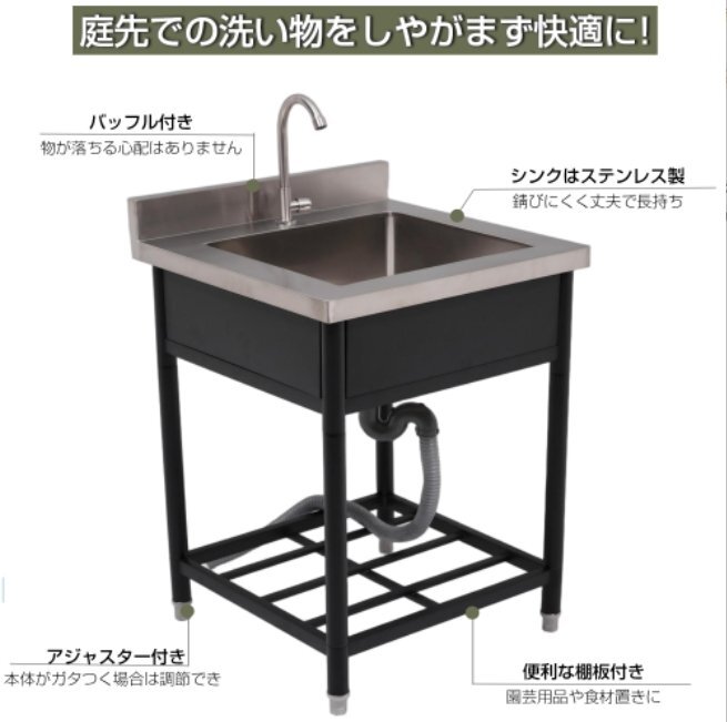 【国内発送】流し台 屋外 ステンレス 水栓付 蛇口付き シンク アウトドア 幅広 水栓付き キッチン 屋外用 ステンレス流し台 ステンレスキ