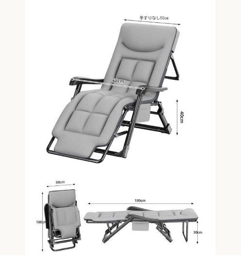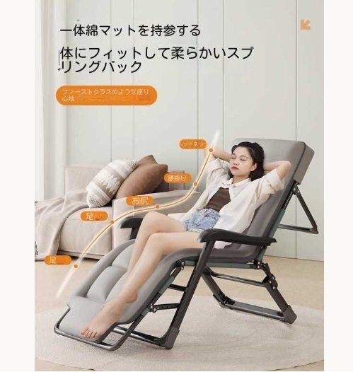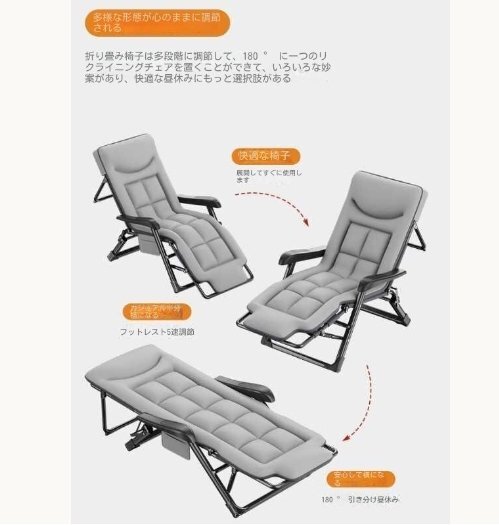 新品です 昼休み用の折りたたみ椅子です オフィスチェア 座臥両用です 折りたたみ式リクライニングチェア 耐荷重は150kgです