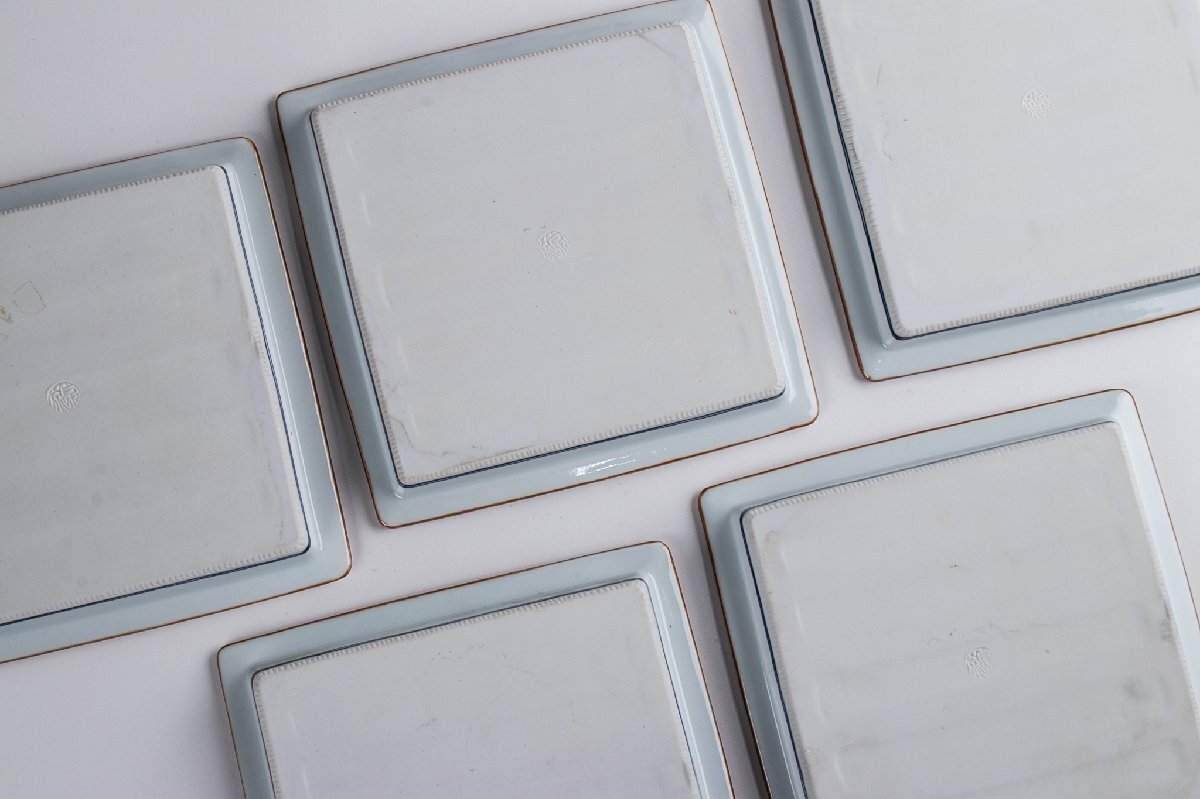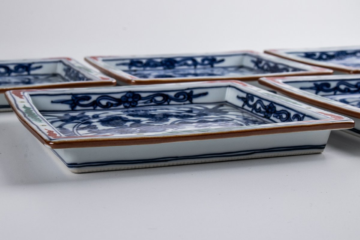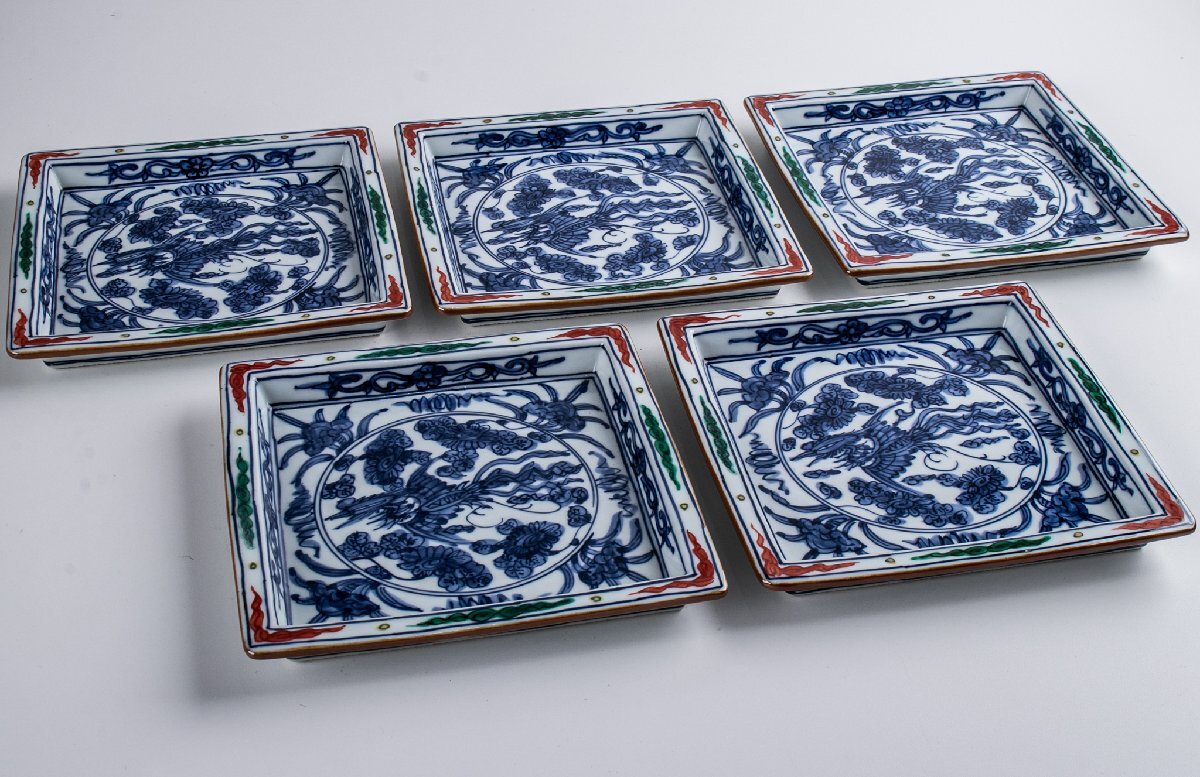 【うつわ】 馬場京泉 着彩花鳥文皿 5客 共箱 F062B 古美術 骨董 古玩 茶道具 日本料理 料亭 懐石