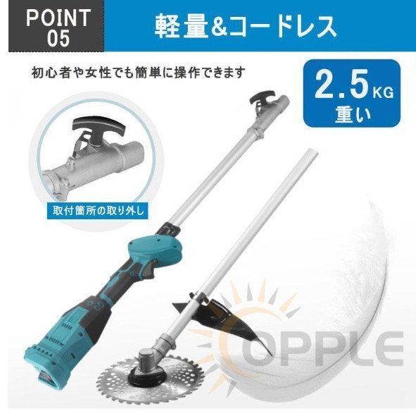 草刈り機 充電式21vバッテリーです 電動 草刈機 9インチ ブラシレスモータ 肩掛け付き 21Vバッテリー1個付き コードレス 多機能(A215)