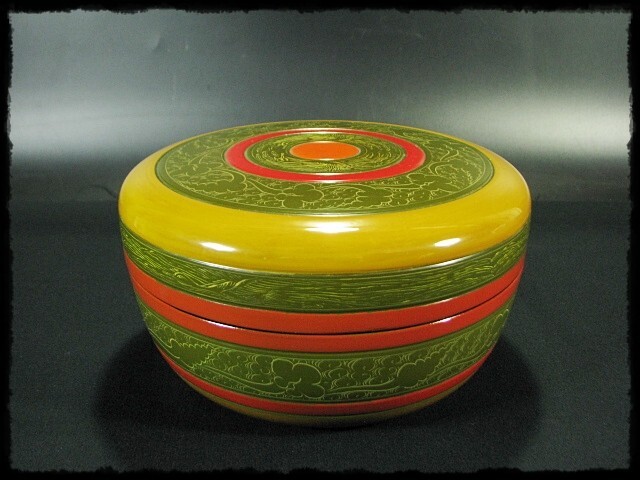 ∴名工館∋【送込!独楽塗 喰籠】加賀蒔絵師 筑城 筑良 食篭 茶道具 菓子器 共箱 無傷 真作保障 送料無料 1 f86