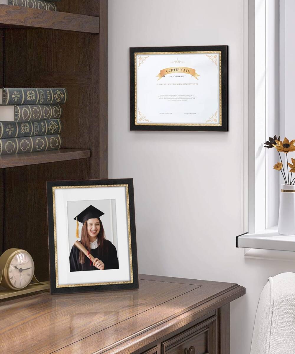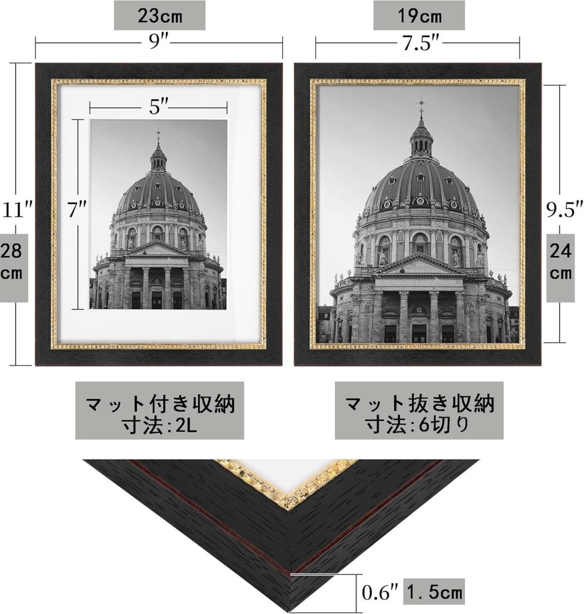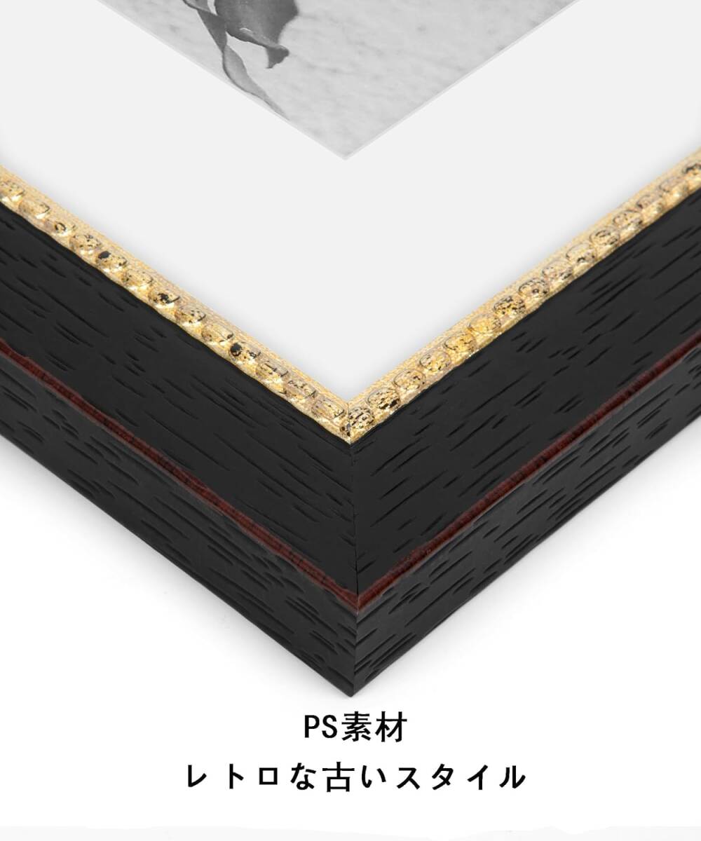 エレガントなゴールドラインが施された、クラシックな雰囲気のブラック木目調写真立てです。ご自宅のインテリアを格上げします。