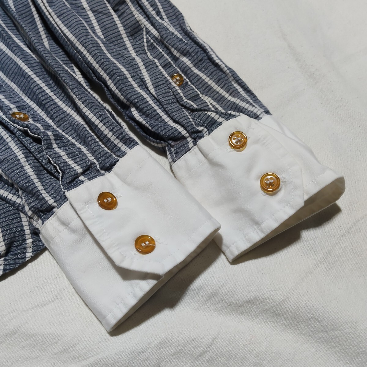 ご覧いただきありがとうございます。実寸平置きサイズ(着丈、脇の下幅)は画像のメジャーでご確認下さい。中古のため多少の使用感、黄ばみ、色褪せなどご理解頂ける方のみの入札でお願いします。