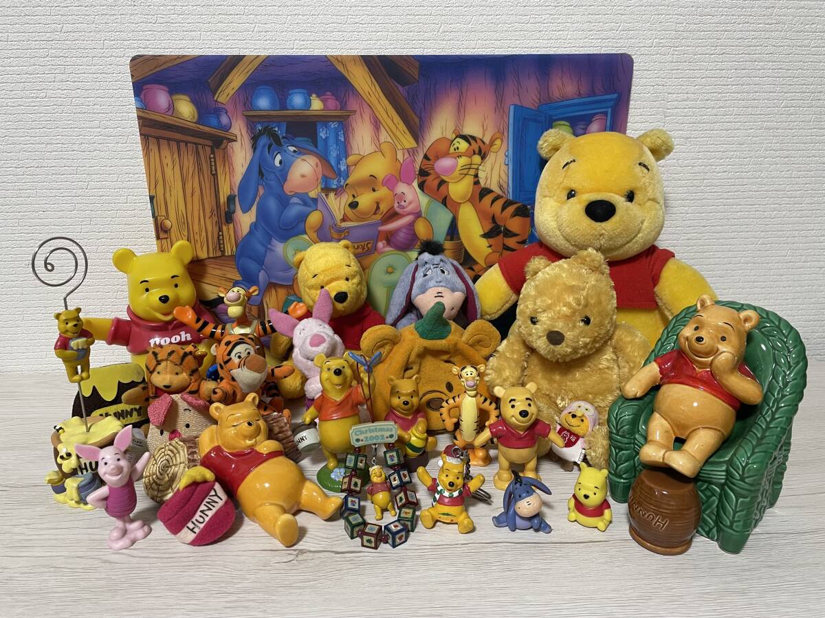 ディズニーランド、ストア、マクドナルドなどプーさんグッズまとめ売りです。ガラスケースに保管しておりましが経年劣化、中古品なので汚れ、傷などあると思います。画像では伝わらない部分もあるかと思うので気になる点はご質問にてお申し付けください。ソフビのプーさんの貯金箱は底の蓋がないです。ランチョンマットは送料をお安くする為曲げてお送り致します。全体的に使用感があります。ご了承の方のみご入札ください。