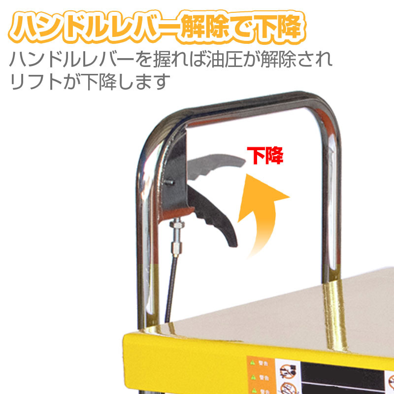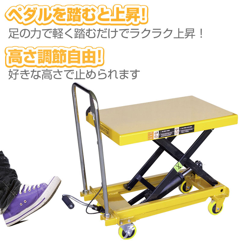 ・ペダルを踏む事により、任意の位置まで上昇出来ます。 下降レバーの加減で下降スピードの調整が可能です。