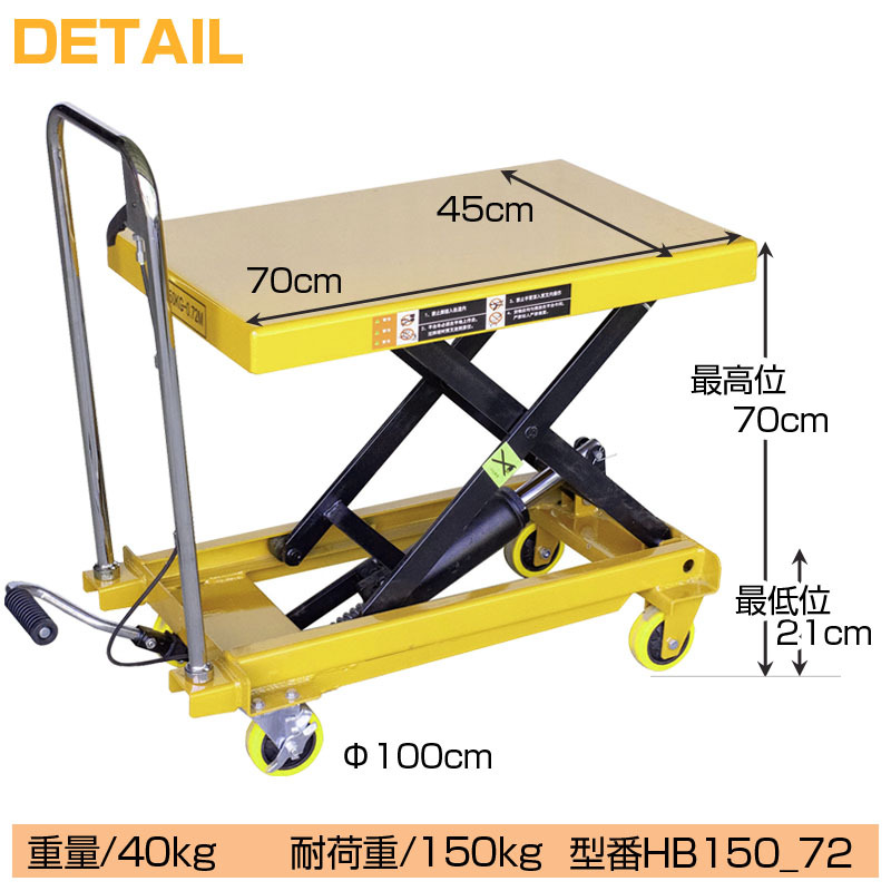 昇降台車 リフトテーブル 油圧式 油圧式リフトテーブル台車 油圧式昇降台車 リフトテーブル台車 荷重150kg 最高位720mm 折りたたみ