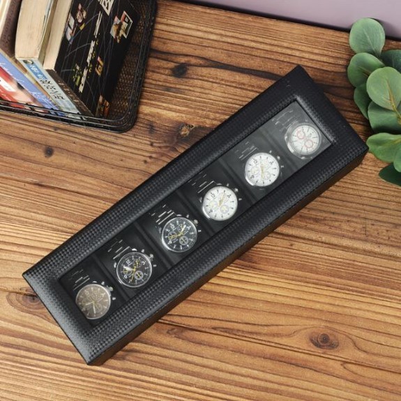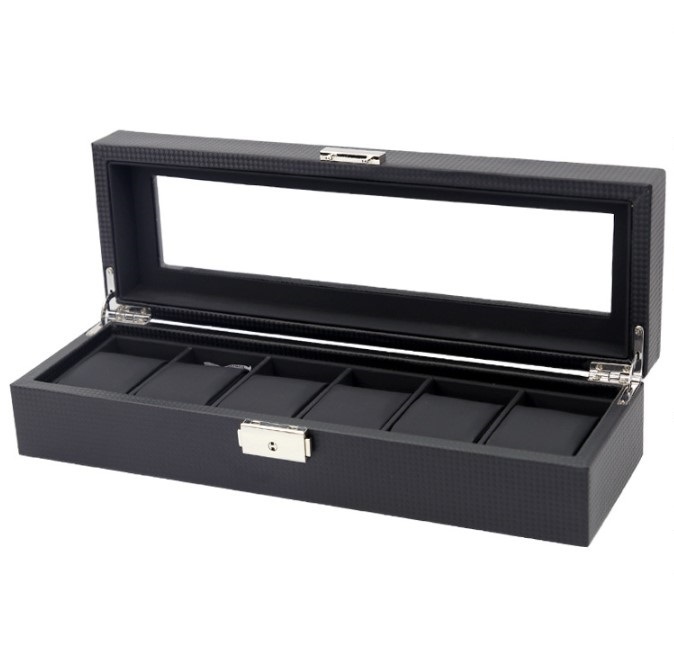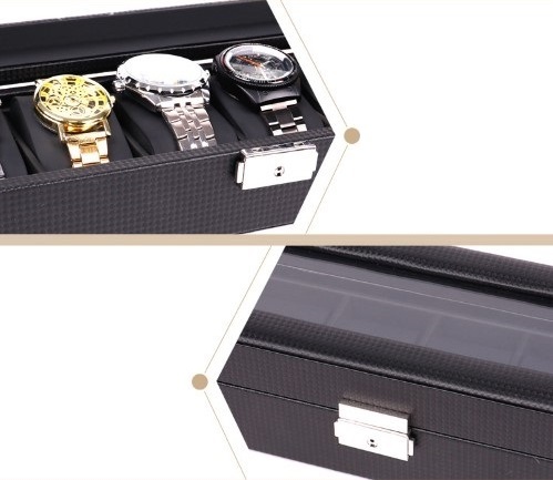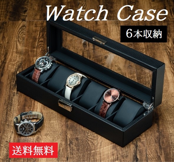 カーボン素材で高級感のあるおしゃれな腕時計収納ケース【6本収納】です。