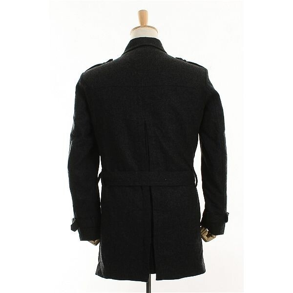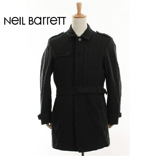 A4624/極美品 秋冬 Neil Barrett ニールバレット ウール メルトン ライナー付 中綿 ミリタリー ワーク 膝丈 ステンカラーコート 3黒/メンズ