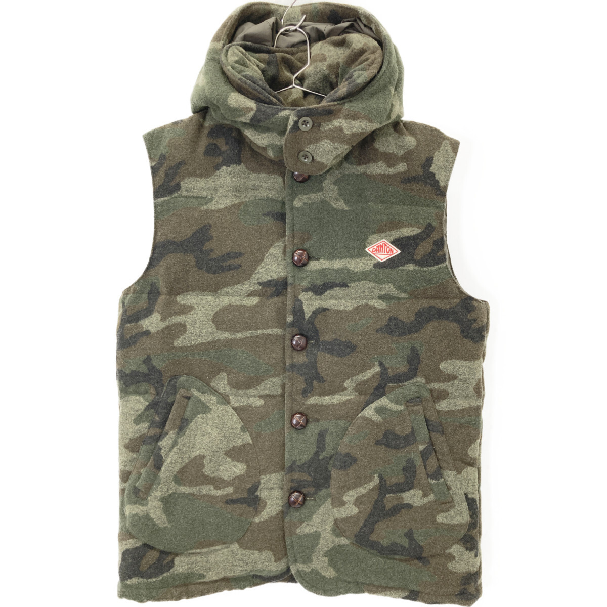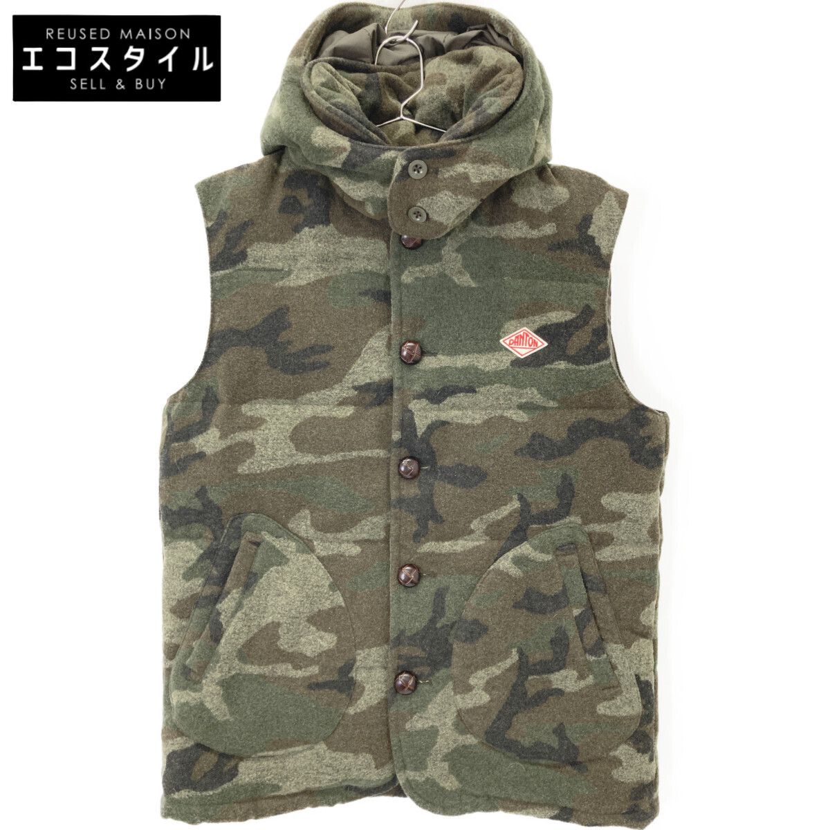 DANTON ダントン JD-8852 ビームス別注 カモフラ ダウンベスト カーキ 42 ベスト ウール メンズ 中古