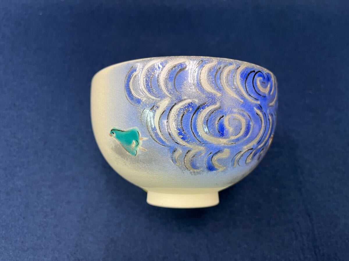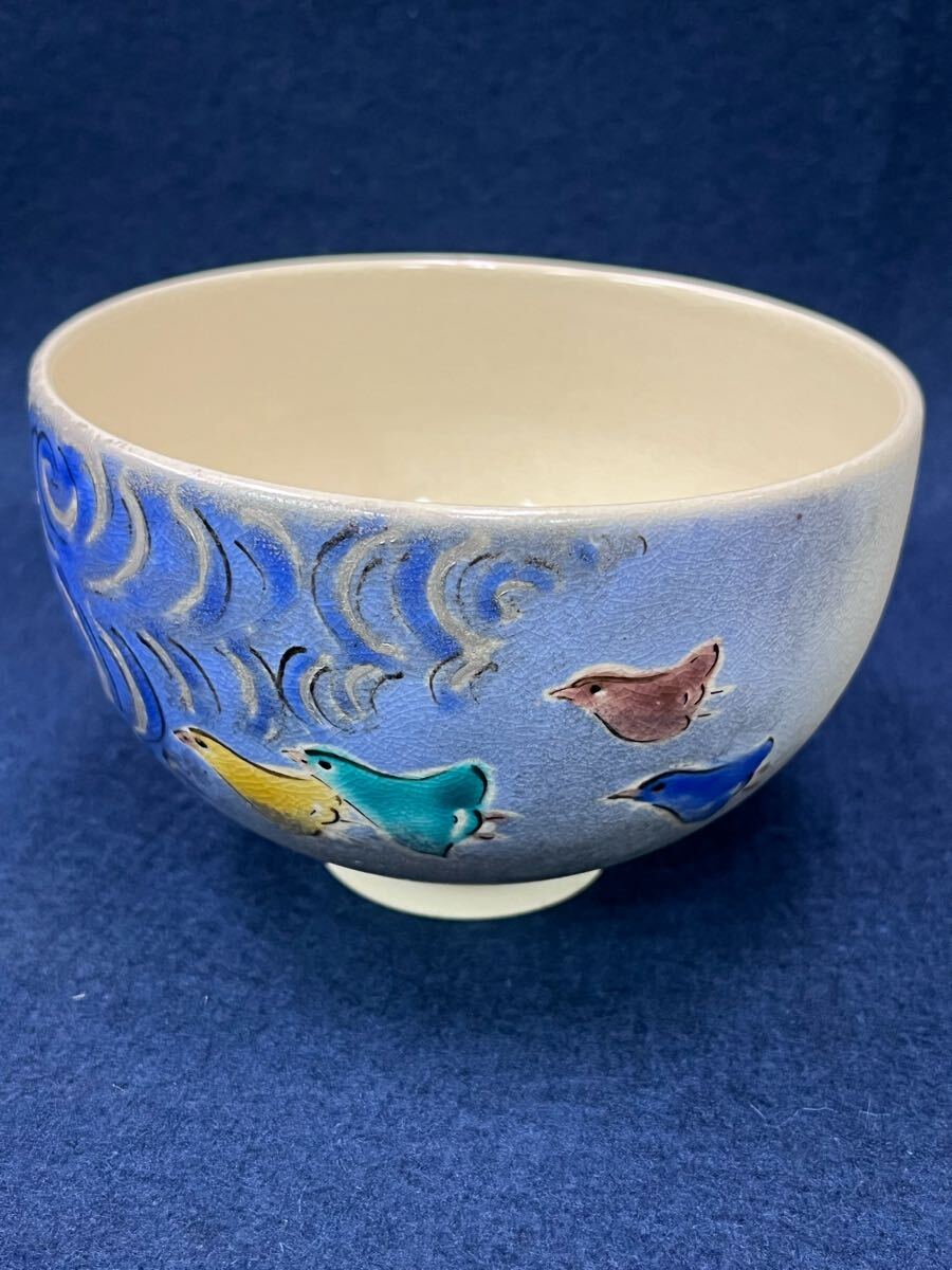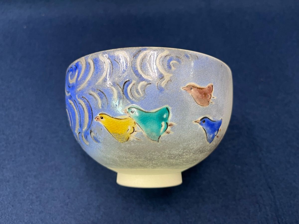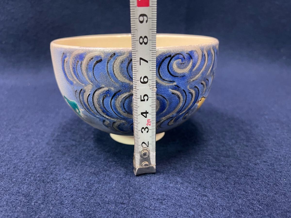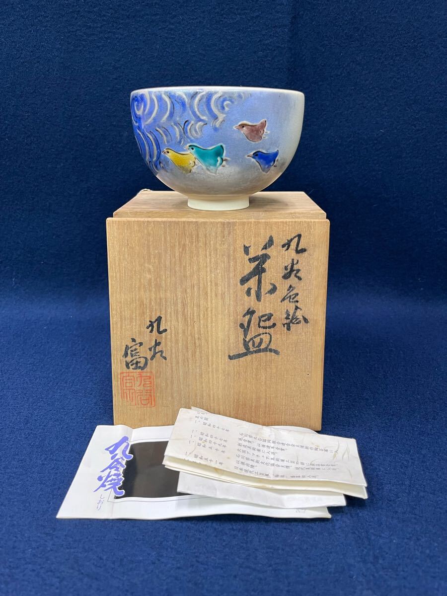 aboc103012 九谷焼 九谷富 作 色絵 ひよこ 茶碗 茶道具 在銘