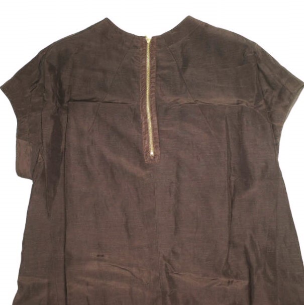 Drawer ドゥロワー 日本製 リネンレーヨンサテン ショートスリーブワンピース 6526-299-1529 36 MD BROWN ドレス トップス g23674