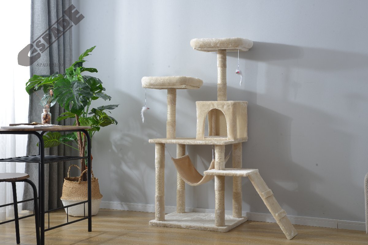 n おすすめポイント ◆全高145cm、安定性抜群、シニア猫と子猫に最適 ◆高いところが大好きなネコちゃんに大歓迎!ふわふわ気持ちいい猫ベッドでお昼寝できます。 ◆上り下りしやすい階段を設置 ◆土台の厚み30mmで、しっかり安定! ◆7か所麻紐あり、いっぱいガリガリできます ◆付属2本のネズミおもちゃきで猫パンチ! ◆狭いところが大好きな猫ちゃんに隠れ家をご用意! ◆マイクロベルボア生地なので、ふわふわで触り心地いい! ◆贅沢のハンモックでニャンコがゆったりリラックスできます ◆2~3匹飼いに最適なサイズ