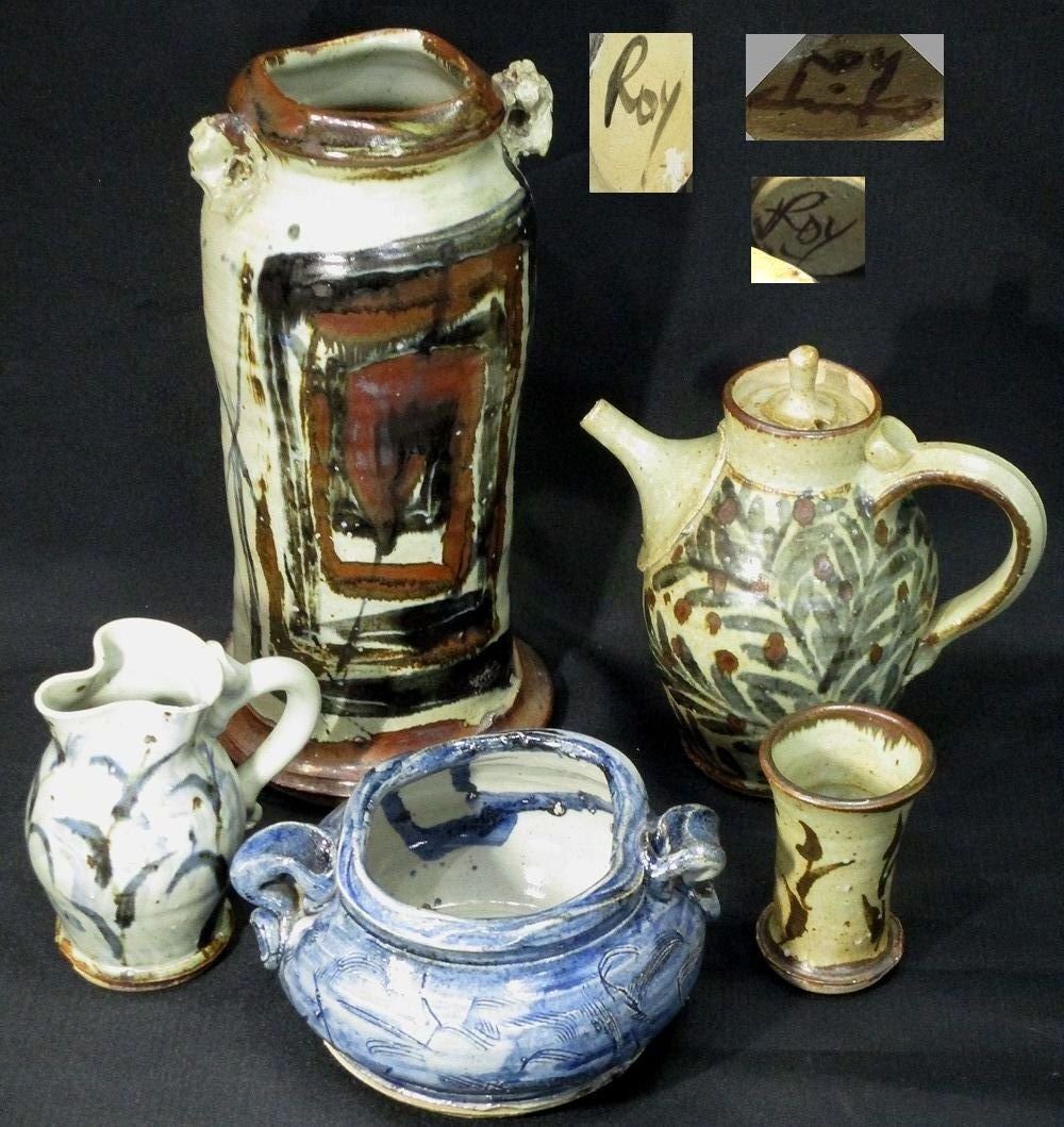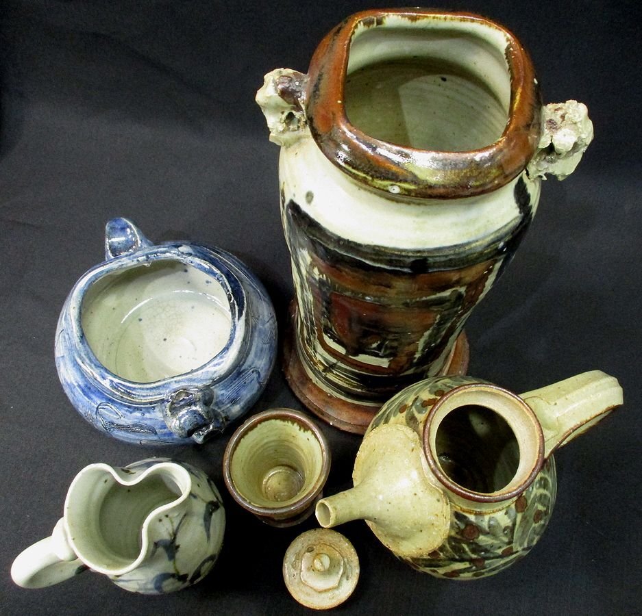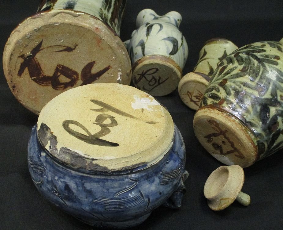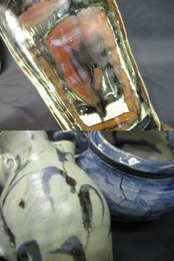 10SC0093 ☆益子笠間芸術陶芸家ロイ・マーティン千恵子ご夫妻の 貴重な作品を集めたセットです。 この機会にいかがでしょうか。 ★ロイ・マーティン氏 1949年 英国ウィンチェスター生 1976~79年 アイルランド・益子で修業 1979年 アイルランド、コーク州で独立 1983年 笠間に築窯 ☆千恵子氏 1953年 山形県東根市生 マーティン氏のろくろ成形、千恵子氏の手びねりの 共同作業で作陶 サイズ(約) 一枚目画像左上の花器 幅14.0×奥行10.5×高さ29.0センチ 底径14.0センチ 個人所有・保管のお品物です。 制作時の窯キズや貫入、経年による擦れや小カケ 付着等の傷みがございます。 窯キズなのか割れなのか 判断が難しいキズのようなものがみられます。(画像10枚目ご参照) 作風かと思われますが少々がたつきがあるものも含まれます。 ポットの蓋が作品のものとあっているかわかりかねます。 現状でのお渡しですが、お安く出品致します。 ※まとめ売りの為、1点1点の詳細はお答えできかねます。 ※上記と画像の状態をご理解して頂いた上で入札をお願い致します ※感じ方に個人差がございますので、些細な所まで気になさる方や、完全美品をお探しの方は入札を御遠慮下さい |