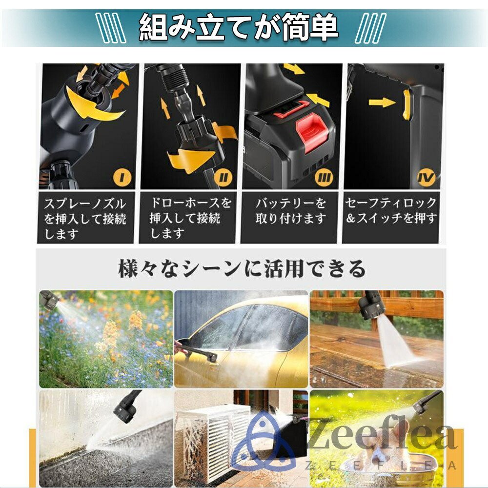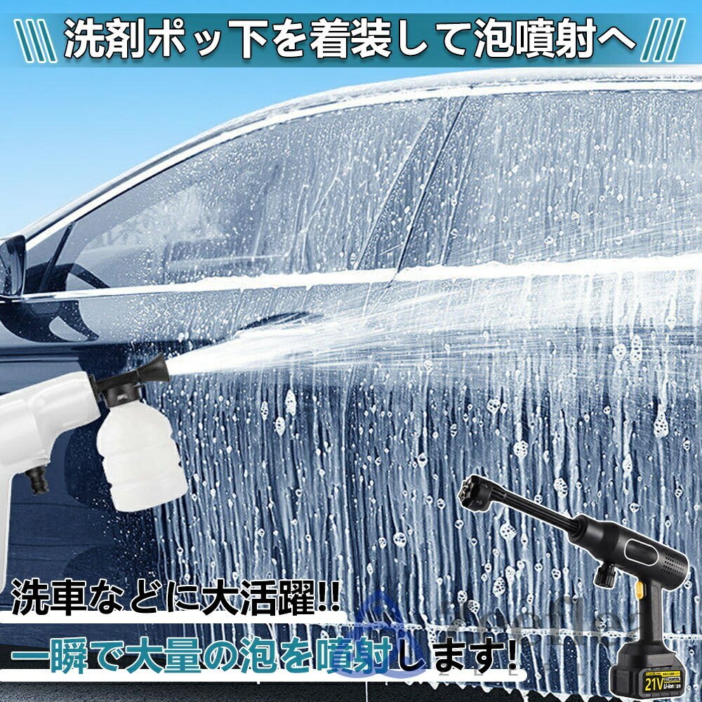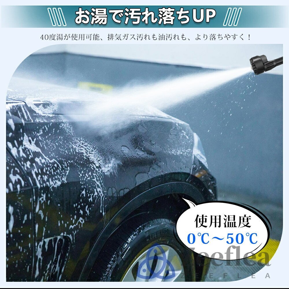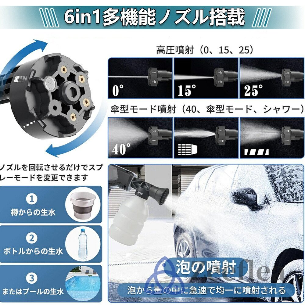2025年最新人気モデルコードレス洗浄機は0°/15°/25°/40°/ファン/シャワー等6つのモードを1つのノズルに合わせています。ノズルの先端を回転させることで、噴射角度を切り替えます。洗剤を泡瓶に入れてから、泡ノズルから細かい泡を噴きます。高圧洗浄機は、車、バイク、自転車などを簡単に洗えます。さらに、バルコニー 外壁 廊下 屋外 階段 外壁 お風呂場とベランダなど清潔清掃にも大活躍です。また、年末大掃除 業務用 キャンプ用品のお手入れ、植物への散水、泥のついた農産物の洗浄にも役立ちます。お家に一台を持つと便利!