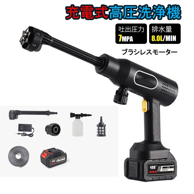 高圧洗浄機 コードレス 充電式 コードレス高圧洗浄機 7MPa ペットボトル 6in1ノズル付き 長時間稼働 強力噴射 高圧洗浄 軽量
