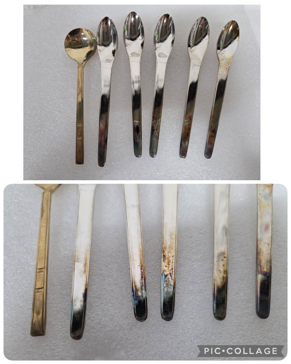 未使用品になりますが、スプーンの持ち手部分にサビが見られますのでお写真にてご確認くださいませ。