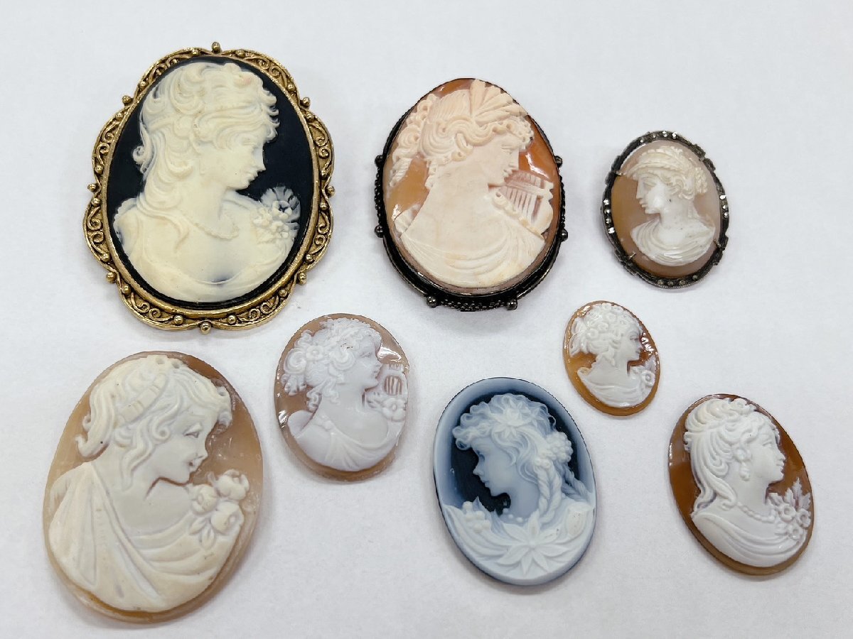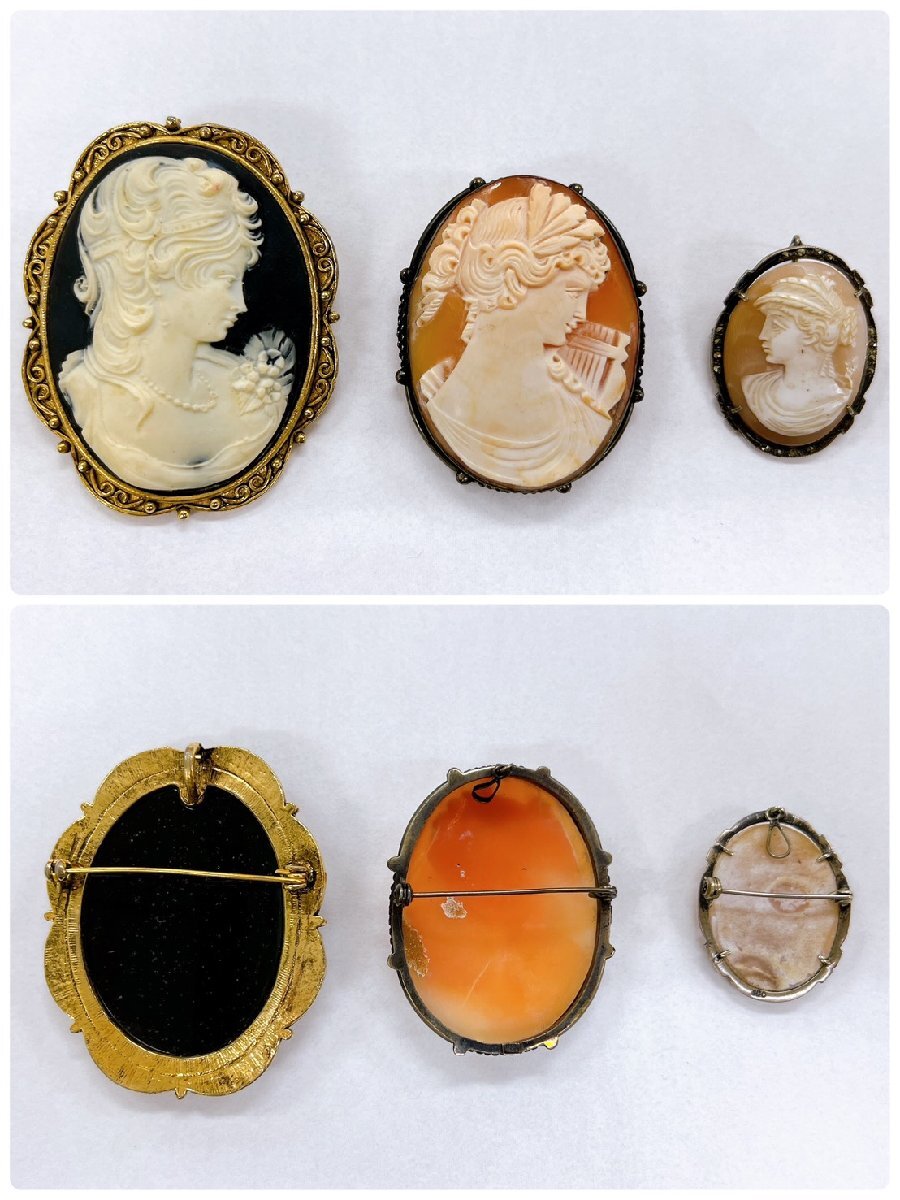 1円 カメオ ブローチ 3点 ルース(裸石)のみ 金具無し 5点 ヴィンテージ アクセサリー アンティーク おまとめセット 現状品【TO012】