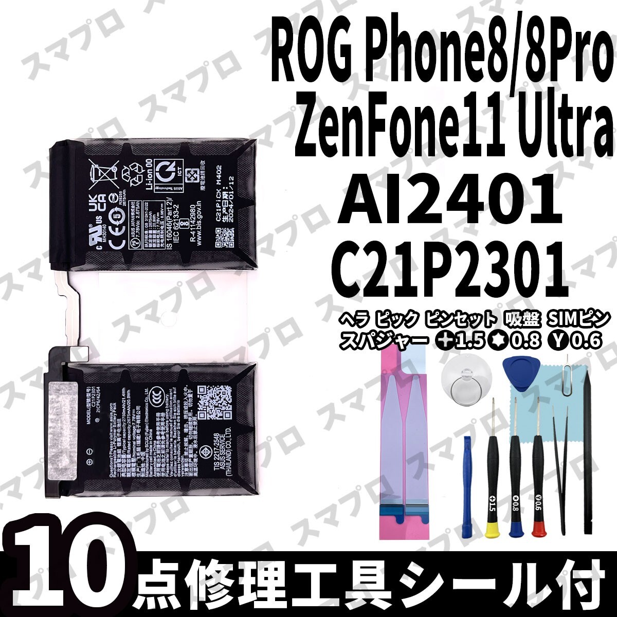 ご覧いただきありがとうございます。 当店は日本国内のAndroid、iPhone修理専門店などに修理パーツを販売しております。 Androidの修理部品に限らず、iPhone iPad パソコン ゲーム機修理部品など多くの修理パーツを取り扱ってきました。 その取引実績から、確かな知識と安心安全な部品をご提供しています。 対応機種: ASUS ROG Phone8 / 8 Pro / ZenFone11 Ultra AI2401 バッテリー型番: C21P2301 ASUS エースース 交換用 電池パック 修理症状: 充電が遅い/バッテリーの減りが早い 裏側が膨らんできた/最大容量を増やしたい 付属品内容: ・バッテリー本体 ・バッテリーシール  |