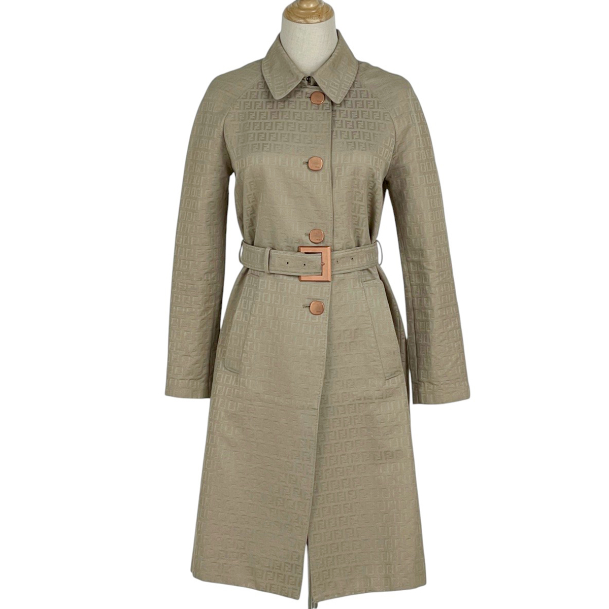 | フェンディ FENDI ズッカ柄 ステンカラーコート ベルト付き FF柄 ズッキーノ柄 ステンカラーコート コットン ベージュ レディース 【中古】 |
