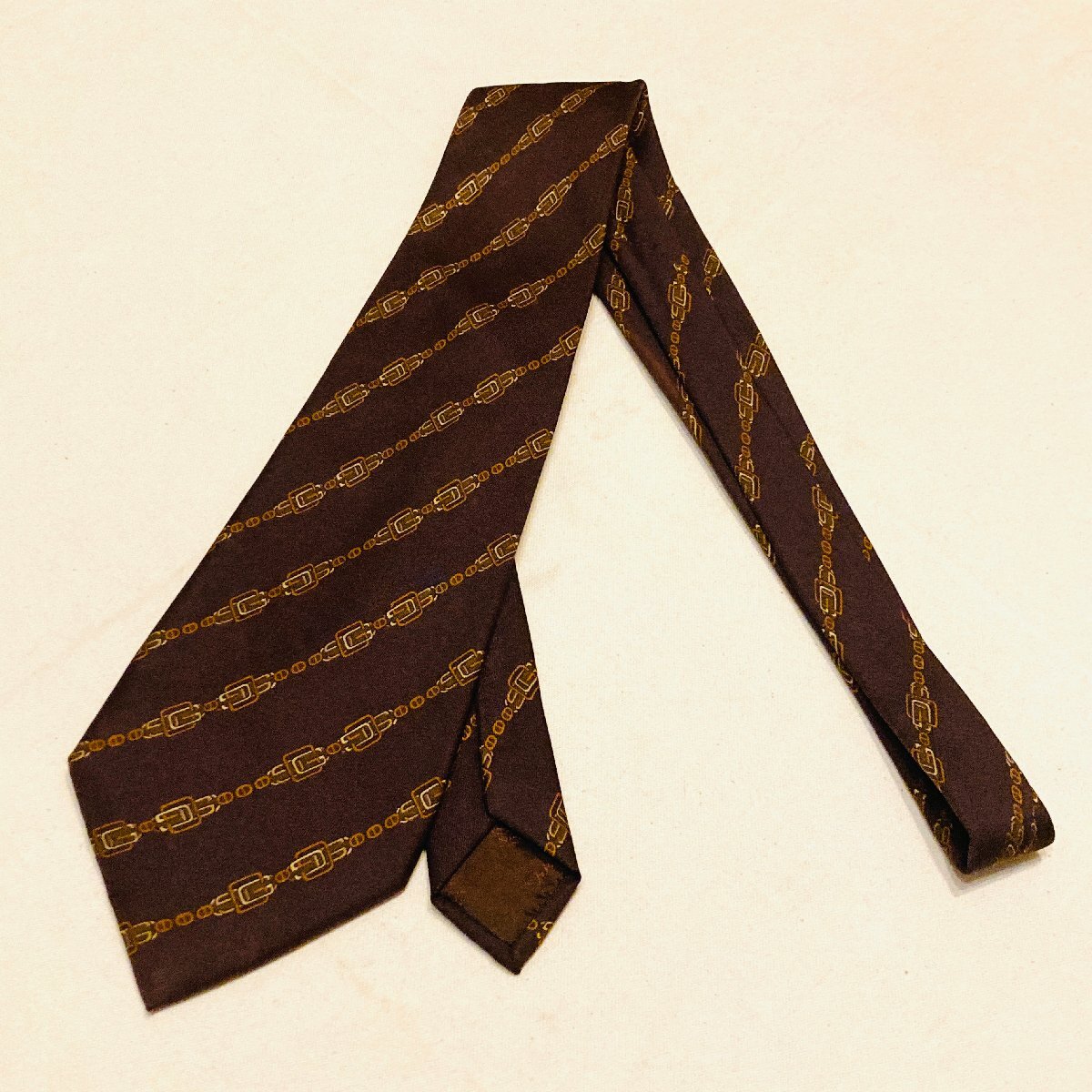 GUCCI グッチ イタリア製 絹 シルク SILK 100% 高級 ネクタイ ブラウン系 ストライプ柄