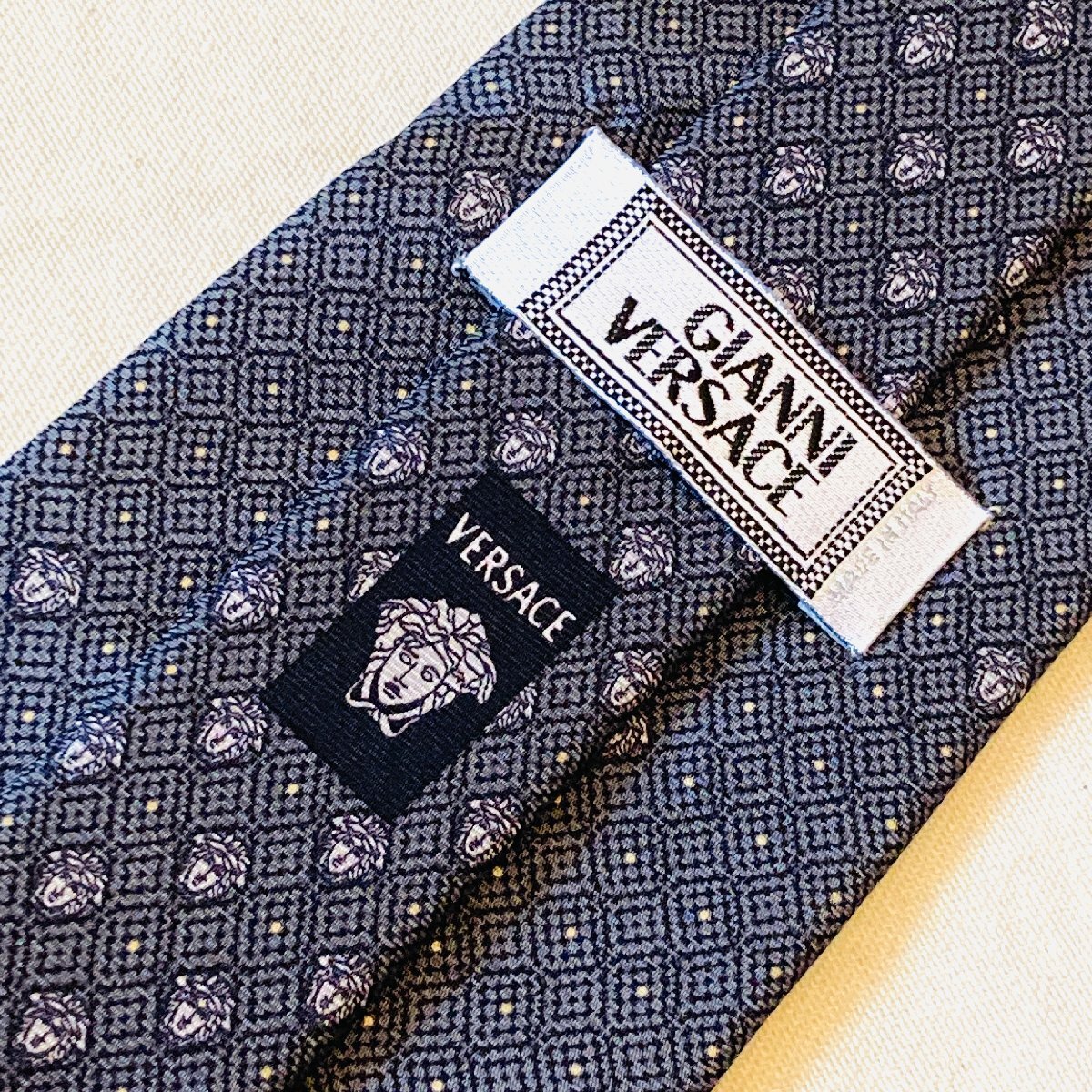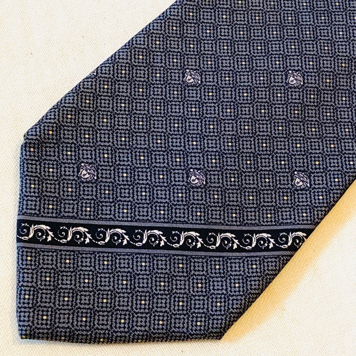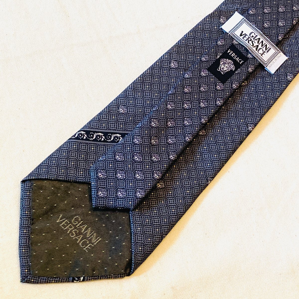 Gianni Versace ヴェルサーチェ イタリア製 絹 シルク SILK 100% 高級 ネクタイ ブラック系 総柄 ロゴ デザイン