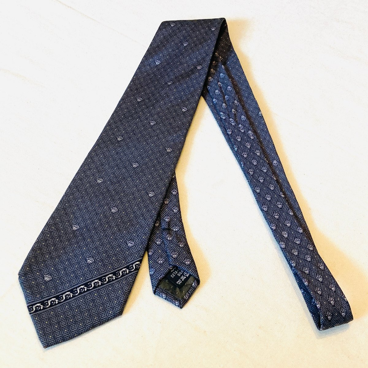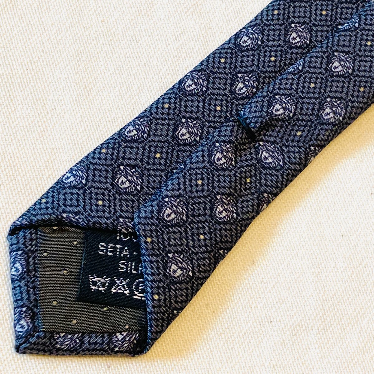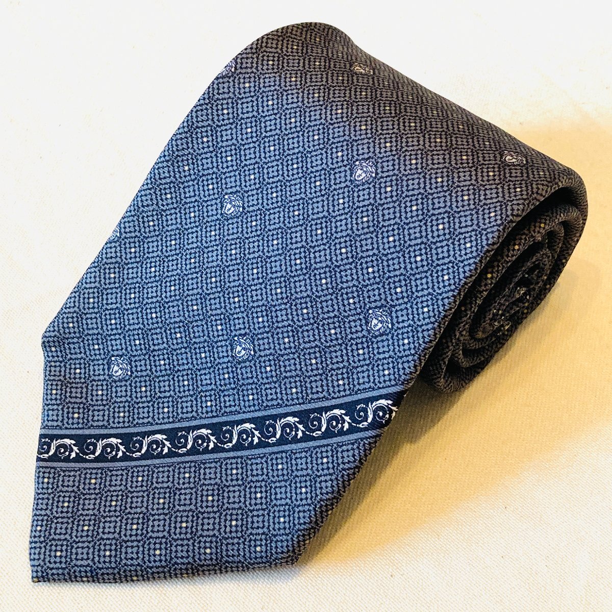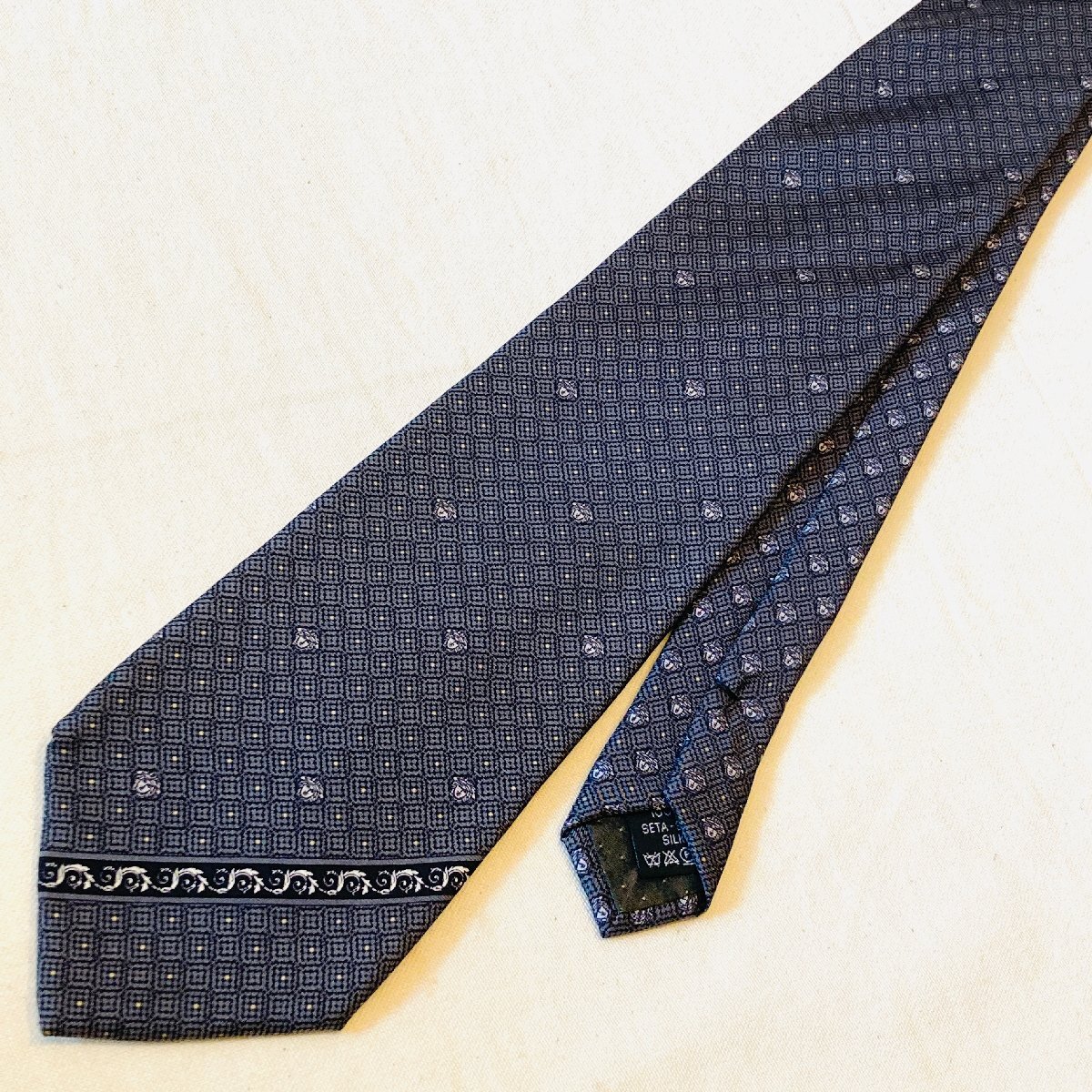 Gianni Versace ヴェルサーチェ イタリア製 絹 シルク SILK 100% 高級 ネクタイ ブラック系 総柄 ロゴ デザイン