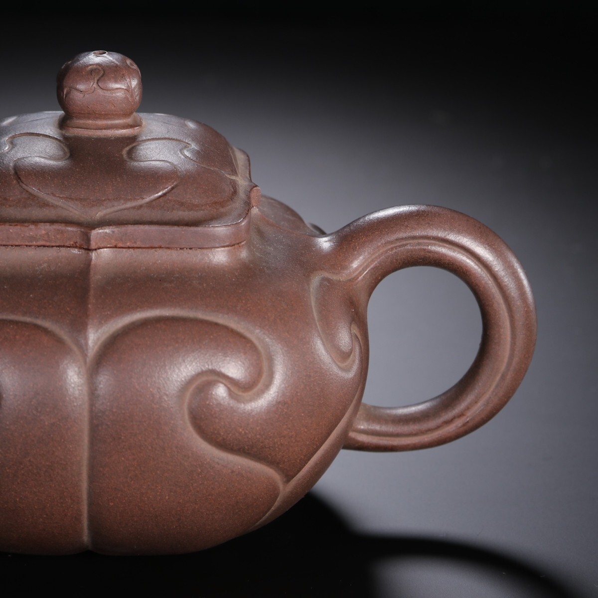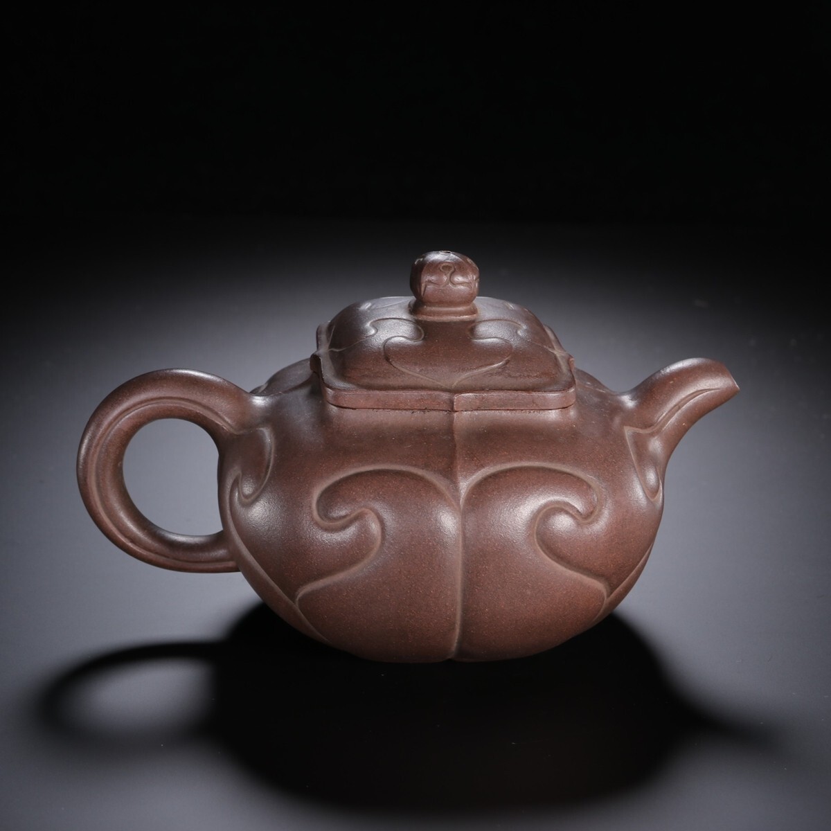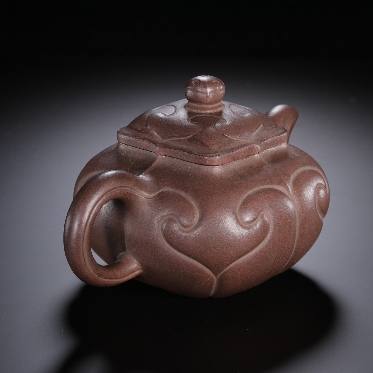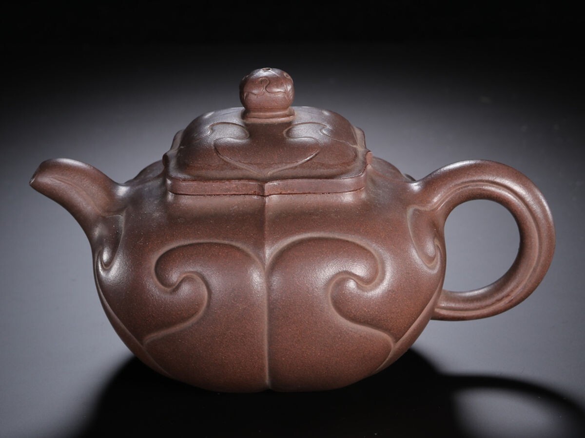 「紫砂彫 如意紫砂茶壺 金鼎商標 馮桂林銘 民國時期」陶磁器 急須 茶道具 古賞物 中国古美術 旧蔵出