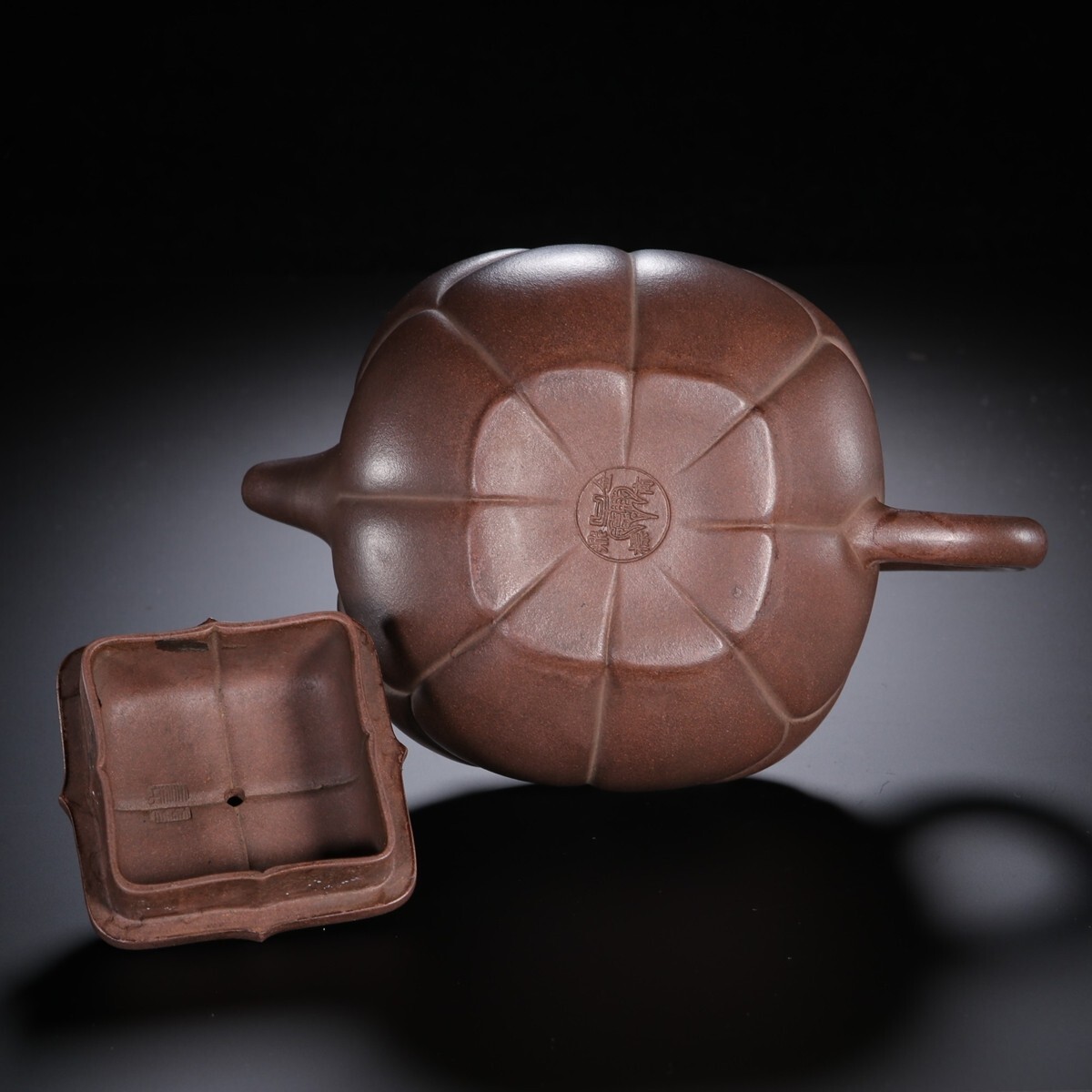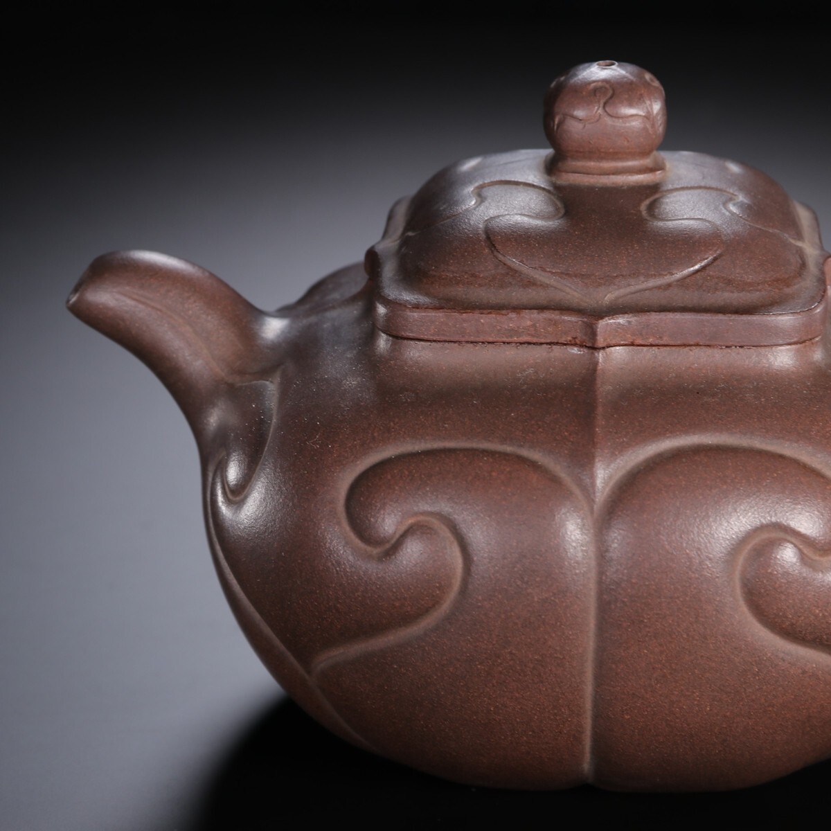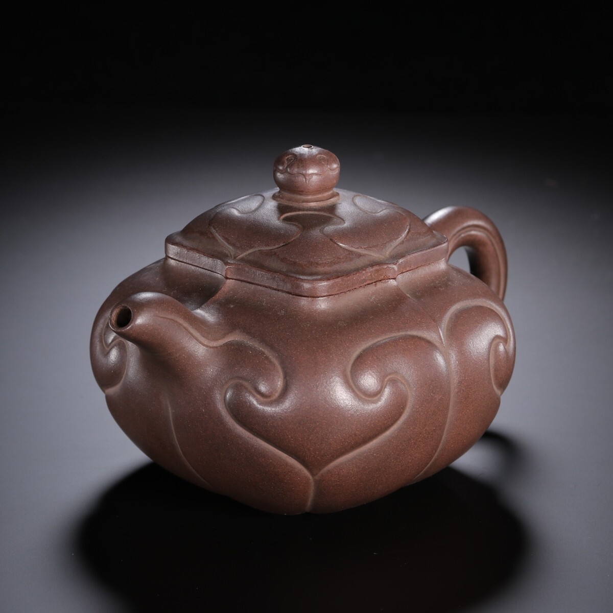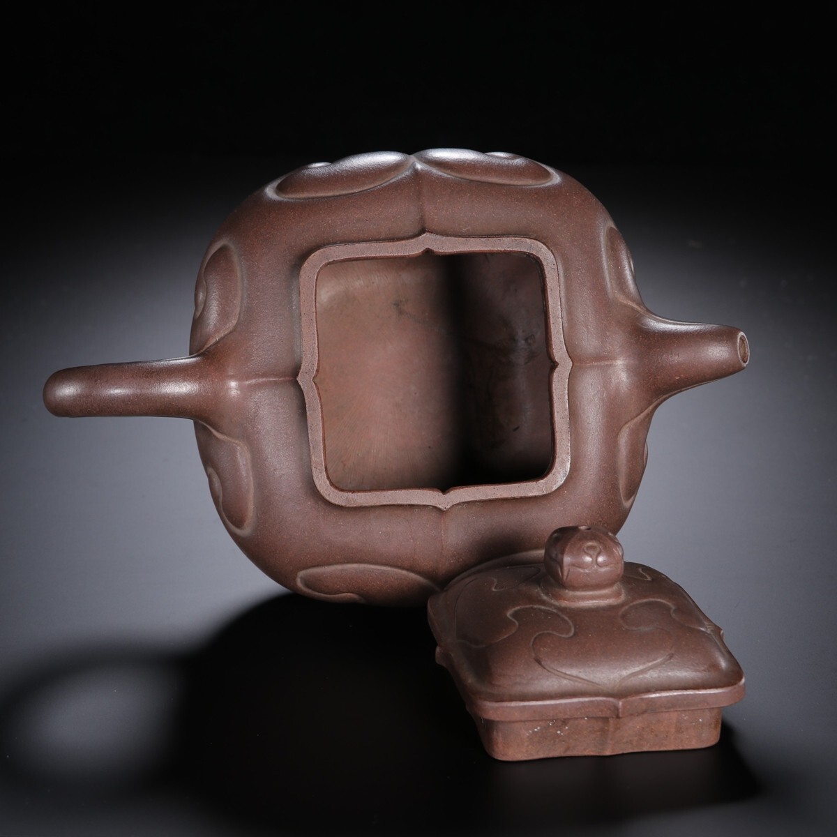 「紫砂彫 如意紫砂茶壺 金鼎商標 馮桂林銘 民國時期」陶磁器 急須 茶道具 古賞物 中国古美術 旧蔵出