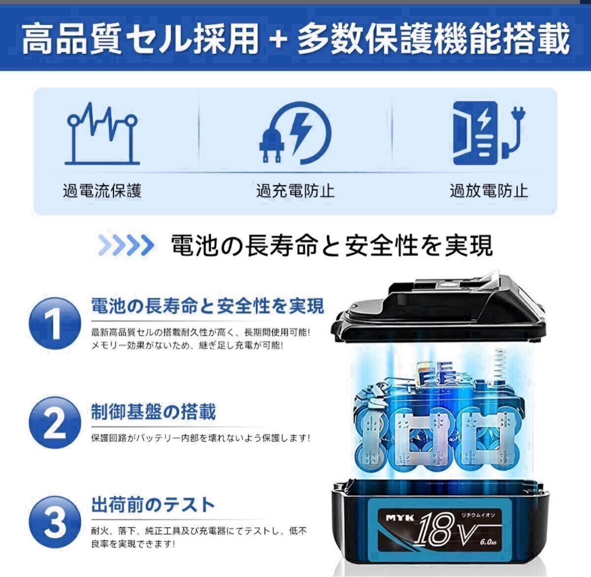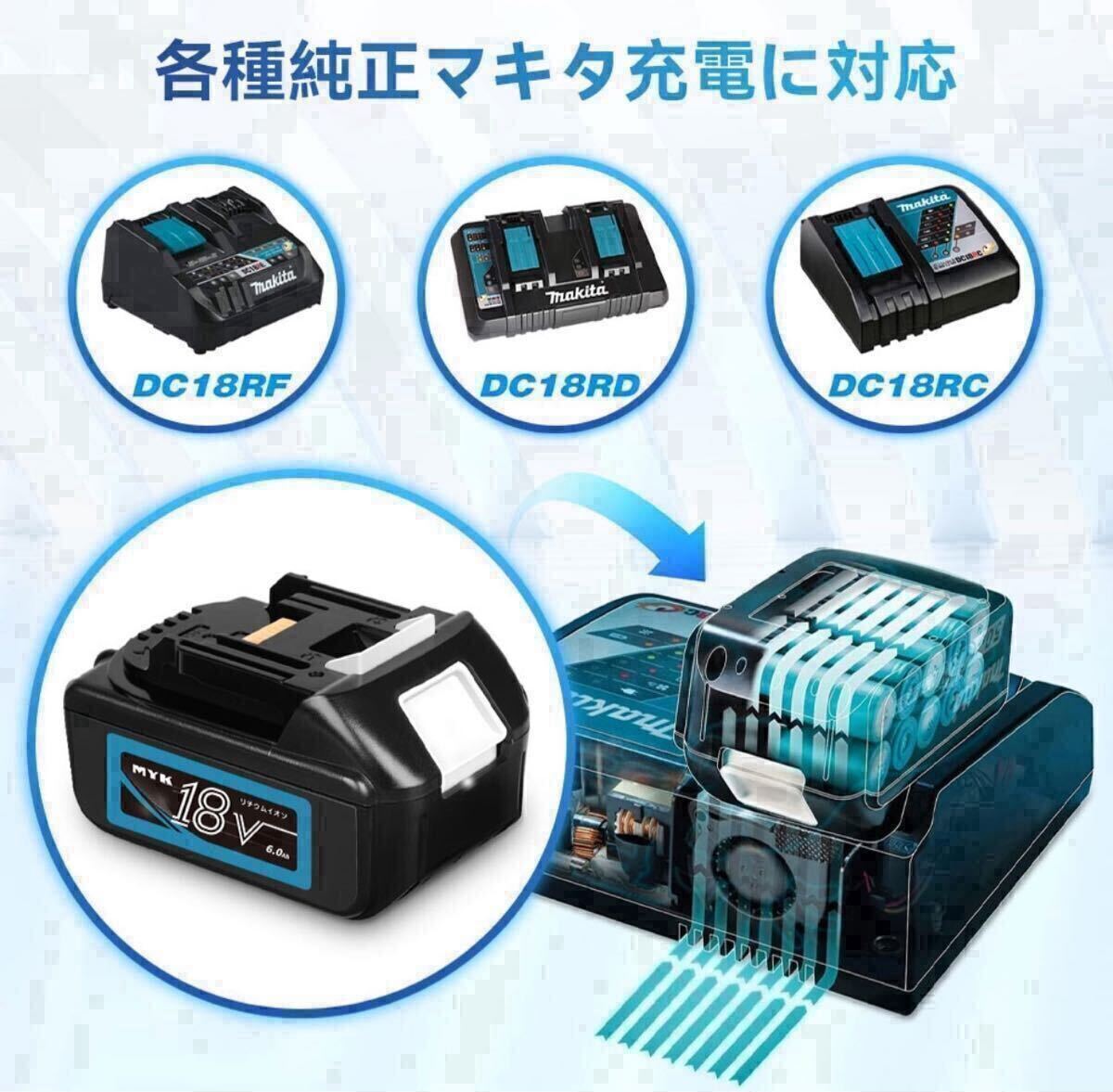 ※ マキタ 用18V 6.0Ah BL1860B 完全互換バッテリー BL1850B BL1840 BL1830と純正急速充電器へ対応