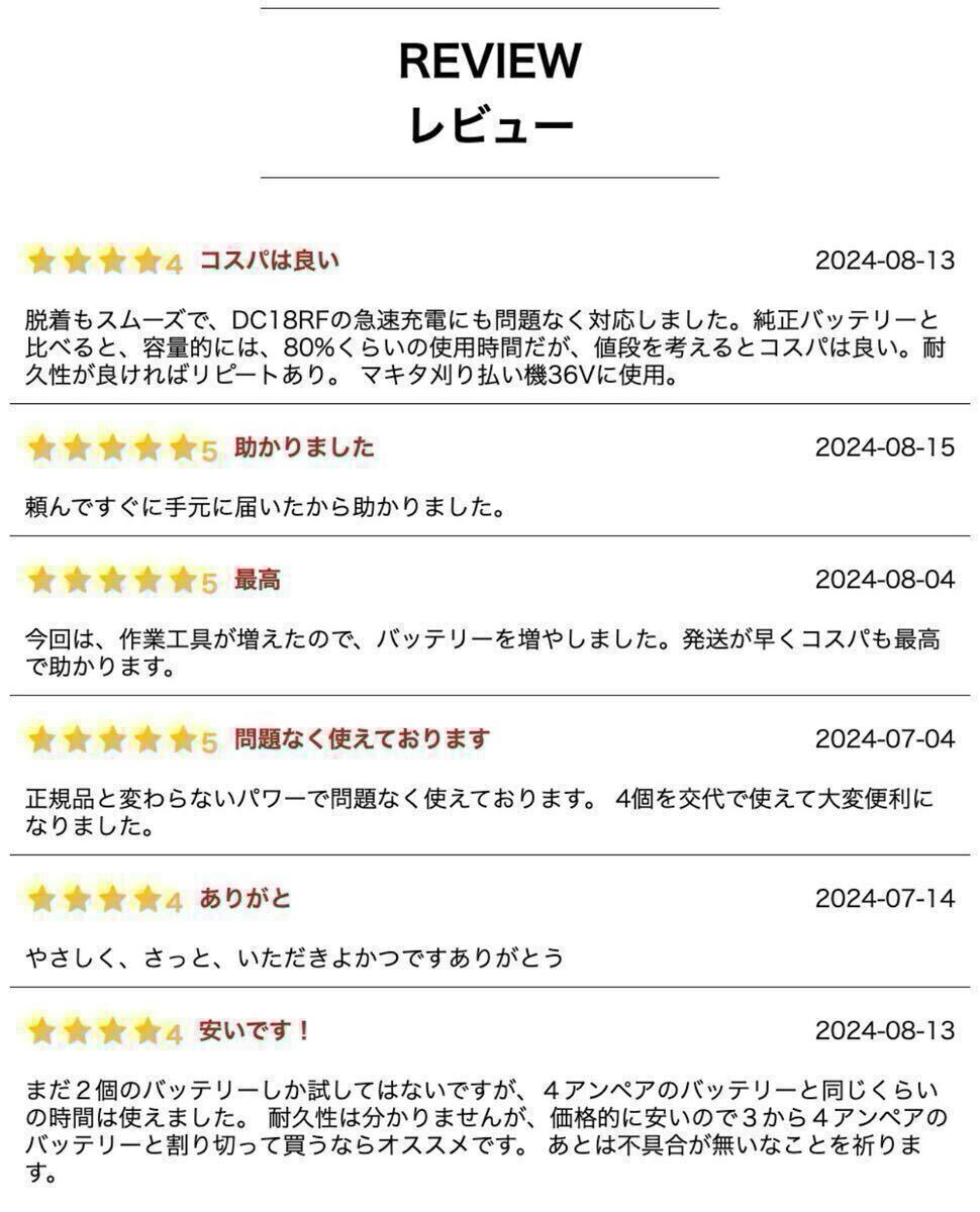 互換バッテリー 新品未使用品※マキタ純正充電器へ対応 全部マキタDC18RC充電器でテストしております,短期保証対応致します、充電できない場合返品できます。