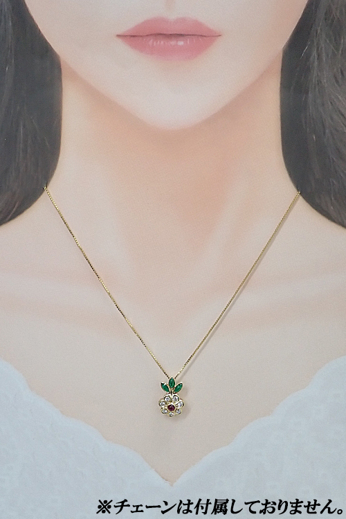 商品名ミラショーン ルビー ペンダントトップ ダイヤモンド エメラルド K18イエローゴールド mila schon 花 フラワー 植物 ボタニカル