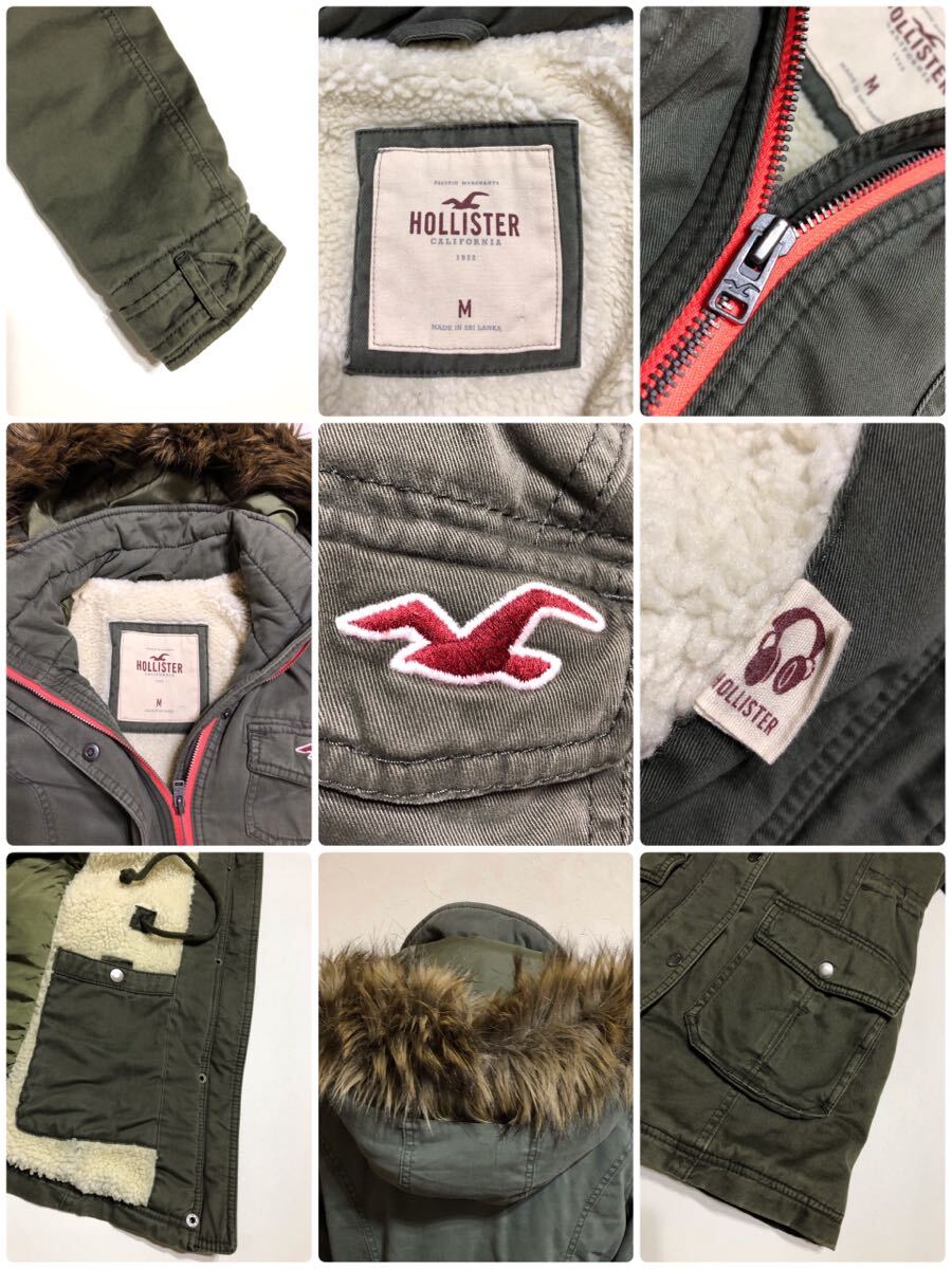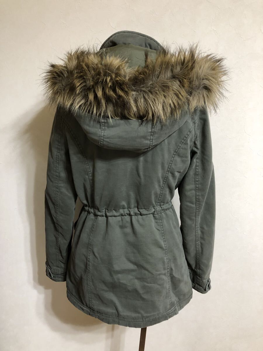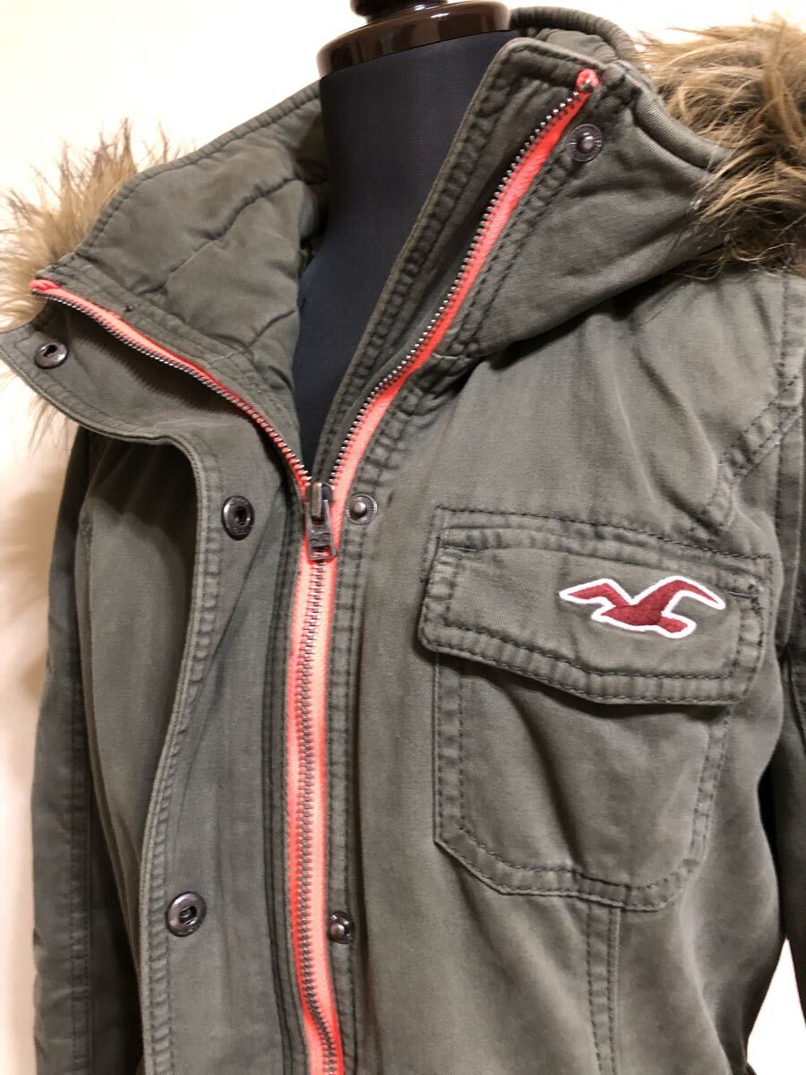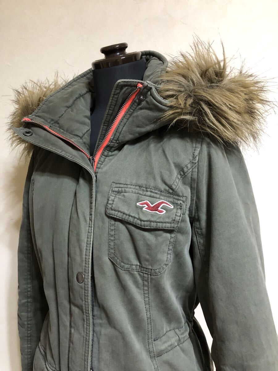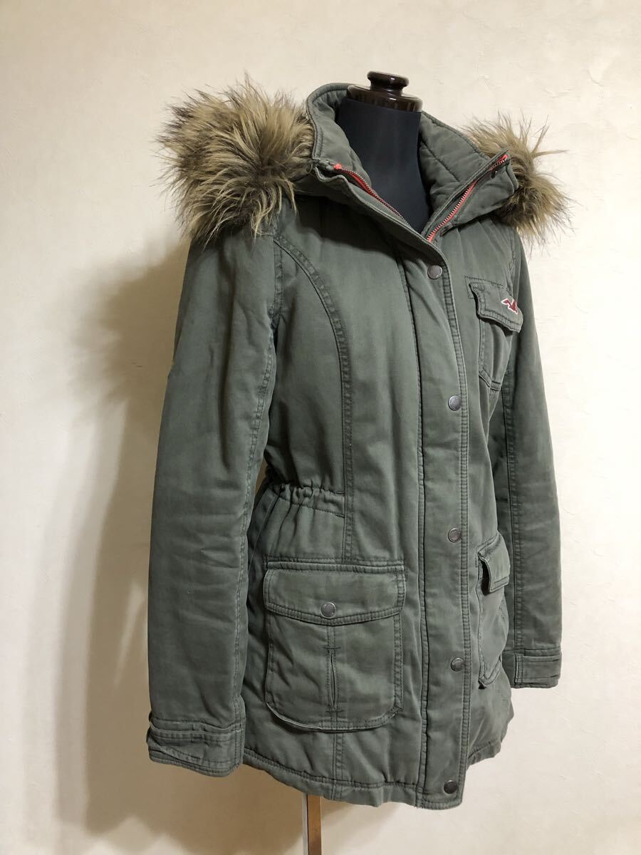 【品名】HOLLISTER ホリスター アウター ジャケット フード ファー 裏起毛 レディース サイズM 長袖 170/92Y オリーブグリーン