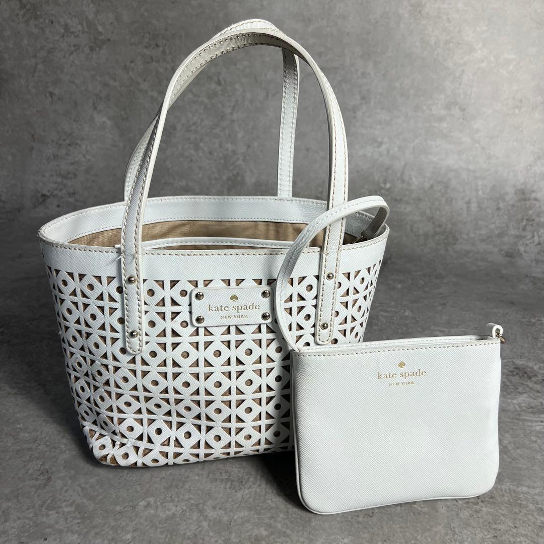ケイトスペード ハンドバッグ 白 レザー ポーチ付き