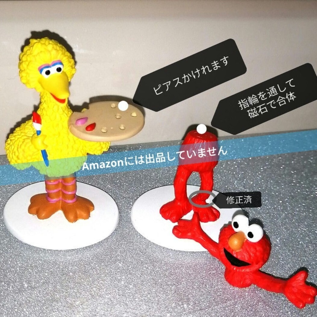 下のエルモ(リングかけ)、ビッグバード(ピアスかけ)は兼アクセサリースタンド。画像2参照。