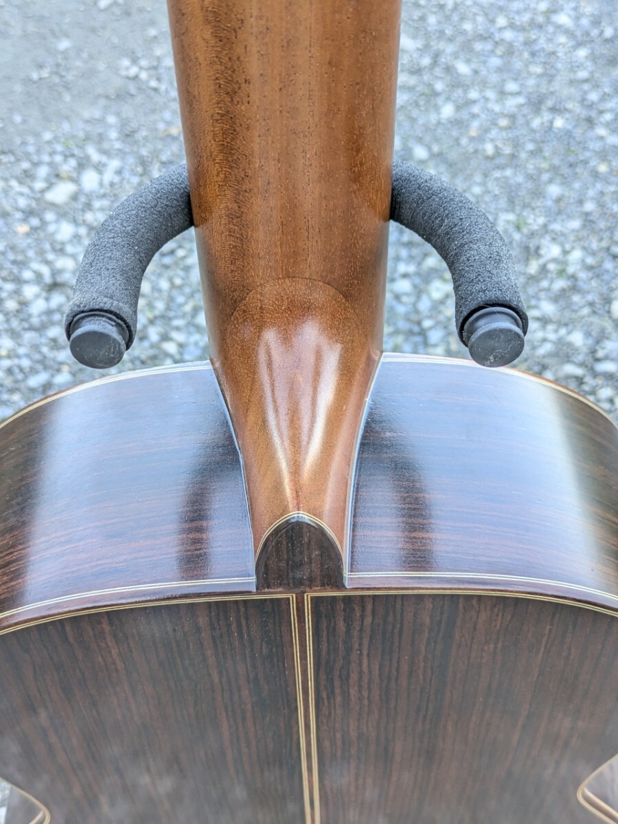 ネック状態:極順反り(実際にはこれ位が理想的です。ヴァイオリンも同じです。)